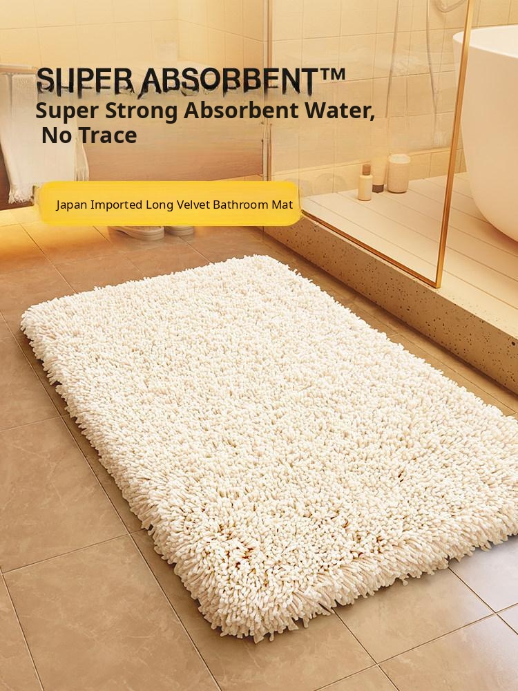 Imported Japanese Long Plush Bath Mat - Absorbent Non-Slip Bathroom Rug for Home Use, Perfect for Entrance and Washrooms - Soft and Cozy Underfoot
