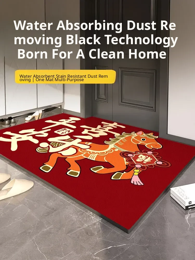 2025 New Year Red High-End Entrance Mat - Non-Slip Door Mat for Home, Perfect for Celebrating the Year of the Horse, Stylish and Durable Doormat for Your Entryway