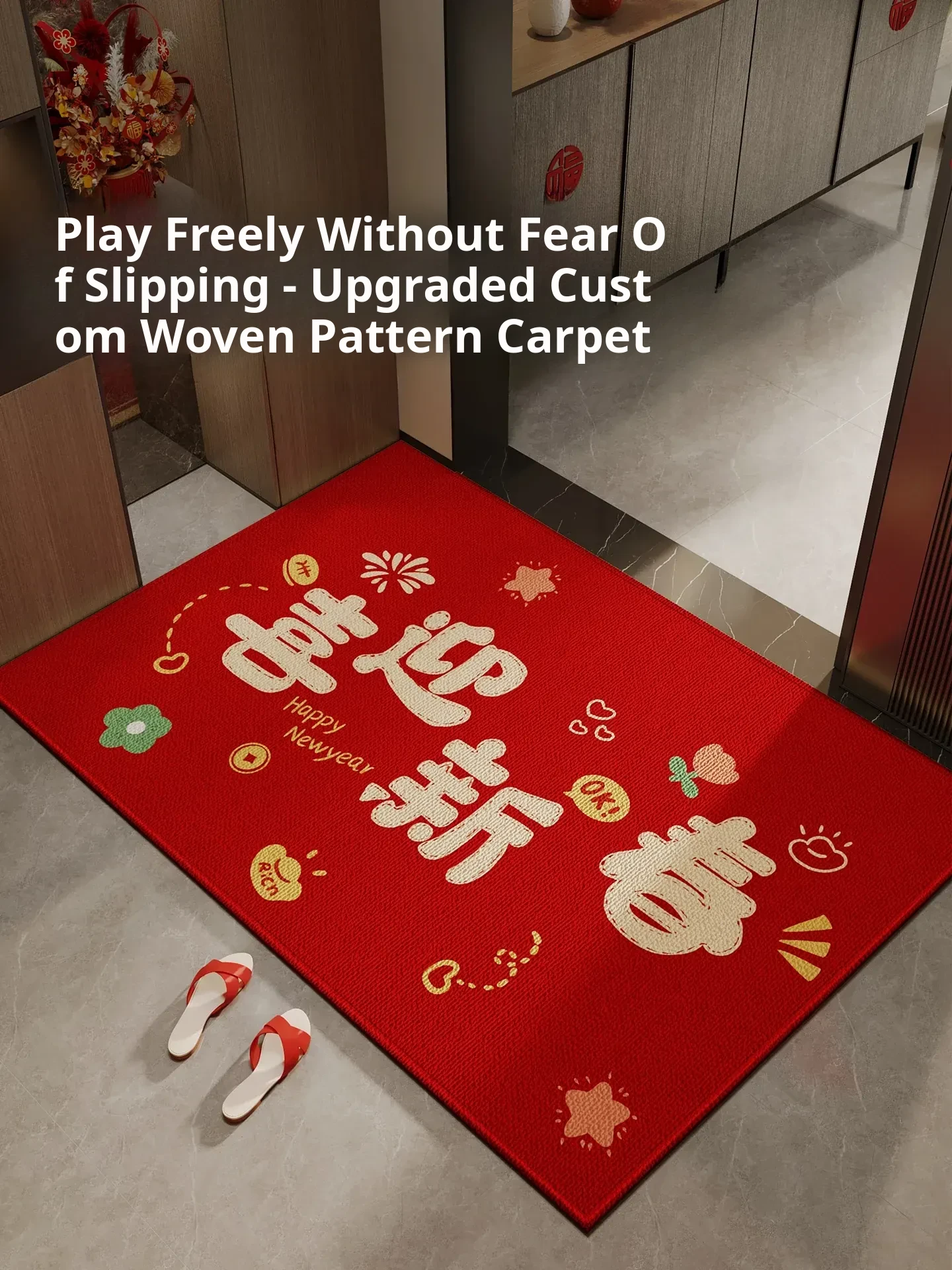 Premium Red New Year Door Mat - Festive and Elegant Entrance Carpet, Durable and Non-Slip Welcome Mat for a Stylish Home Entryway