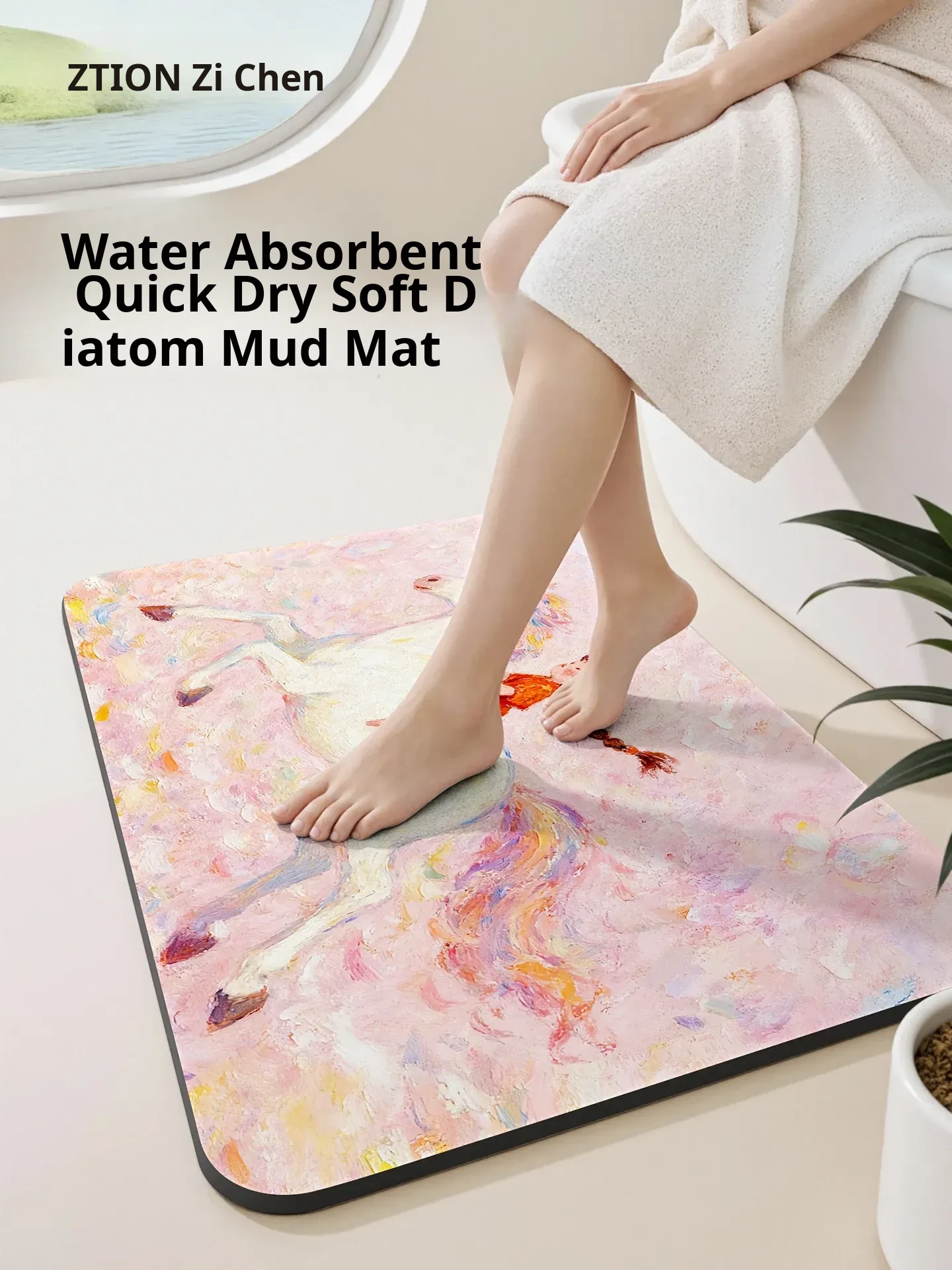 【Authentic Crying Horse】Soft Absorbent Bath Mat - Non-Slip Diatomaceous Earth Bathroom Rug, Quick-Dry Floor Mat for Safety and Comfort.