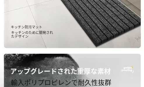 滑り止め・防油・簡単に拭ける!吸水性抜群で汚れに強いキッチンマット2025年新作!お手入れ簡単、あなたのキッチンを守る専用フットマット。