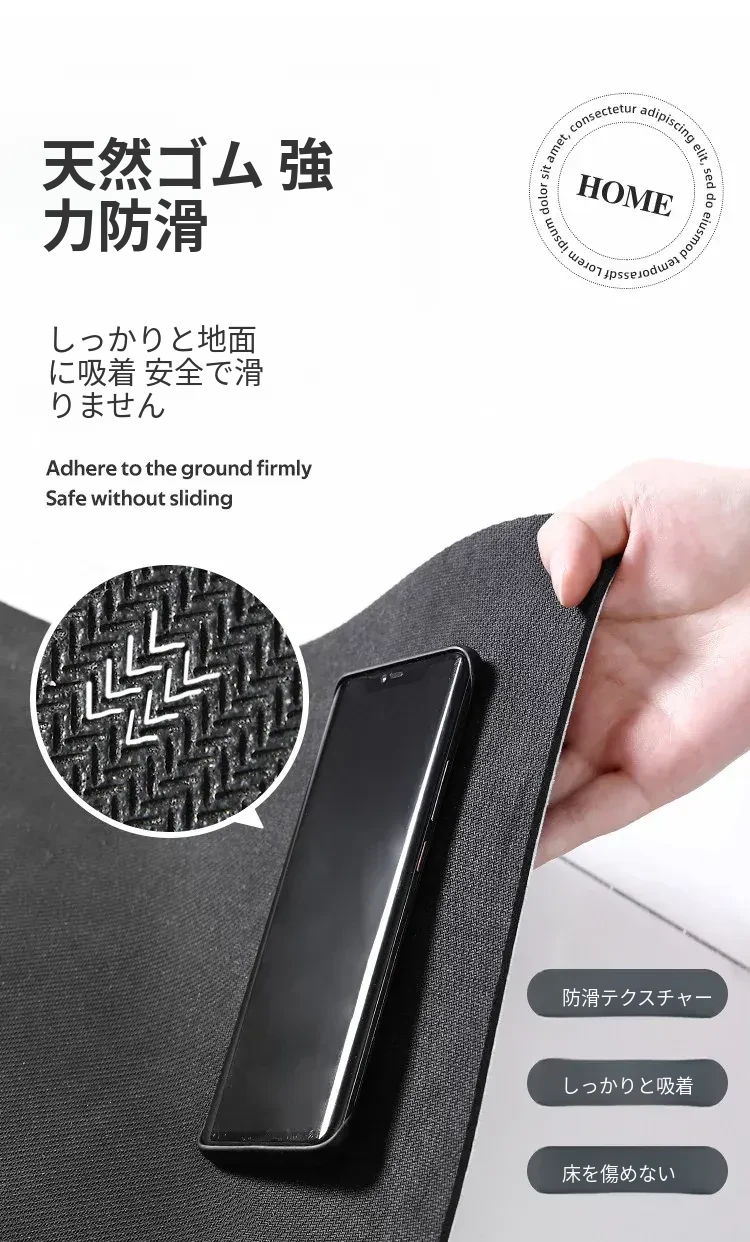 zcグレー-角丸-新 【弾力のあるゴム底 柔軟でシワ防止 安全滑り止め】