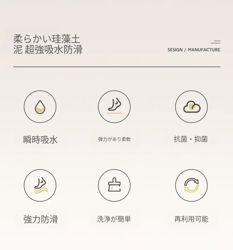 2025年最新!吸水性抜群の柔らかいシリカゲルバスマット - 家庭用トイレ・洗面所に最適!滑り止め付きで安全・快適な使用を実現。おしゃれなデザインで、玄関や浴室を華やかに演出します!