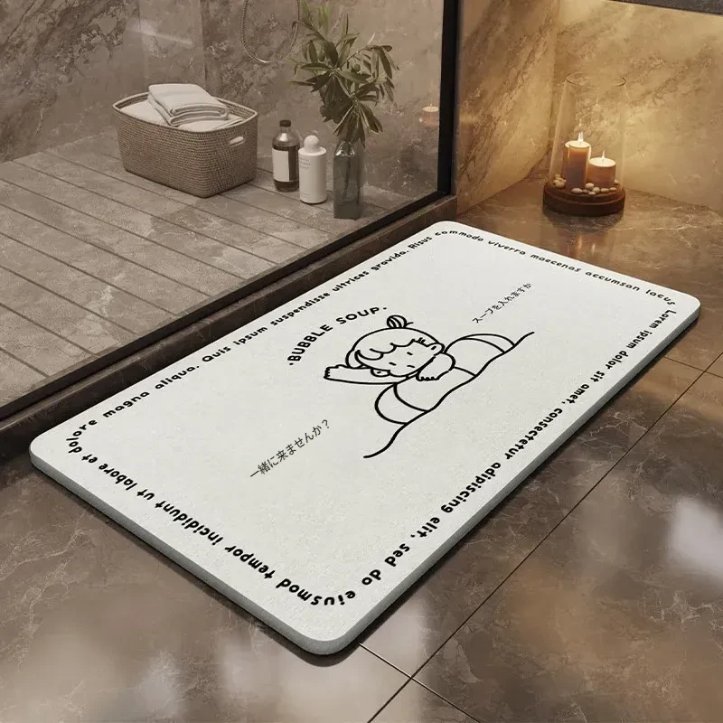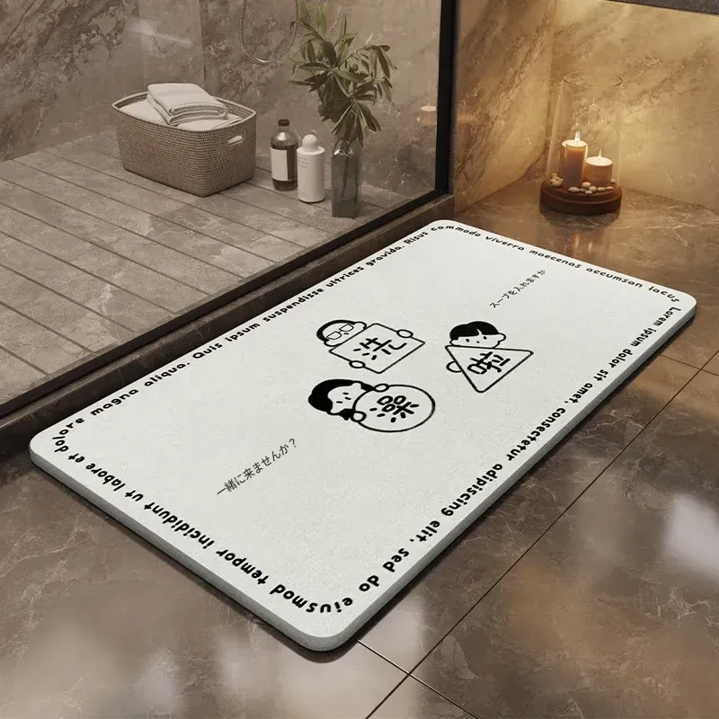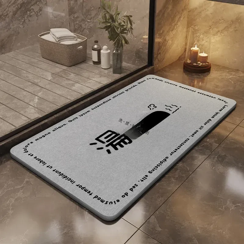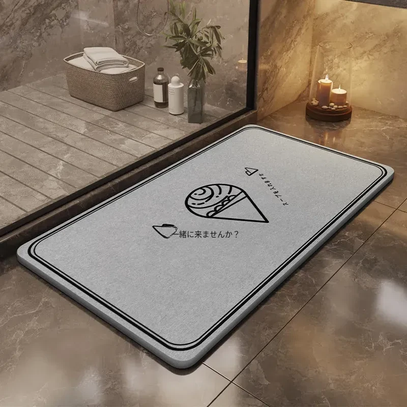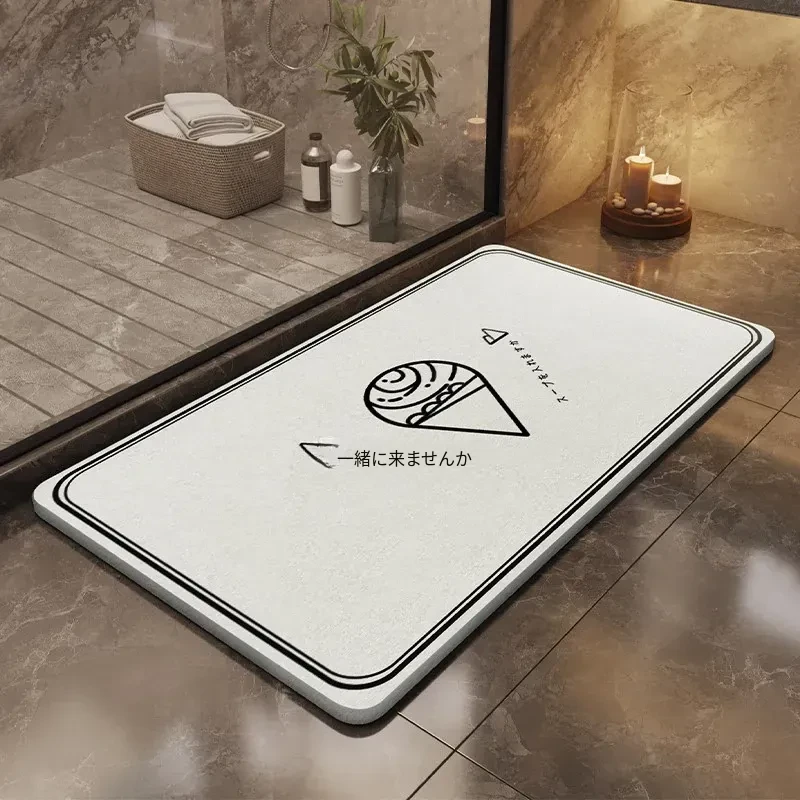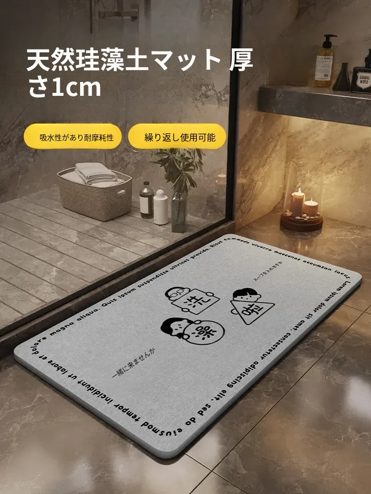 耐汚れで吸水性抜群!硬質シリカ藻マット - 衛生的なバスルーム用滑り止めマット。速乾性で、浴室の入口やトイレに最適なフロアマットです。お洒落なデザインで快適な空間を演出します!