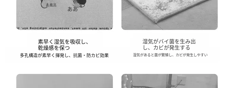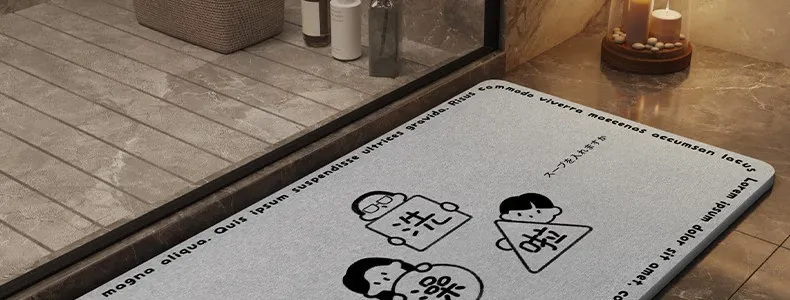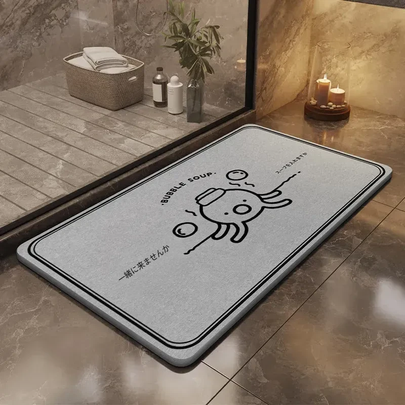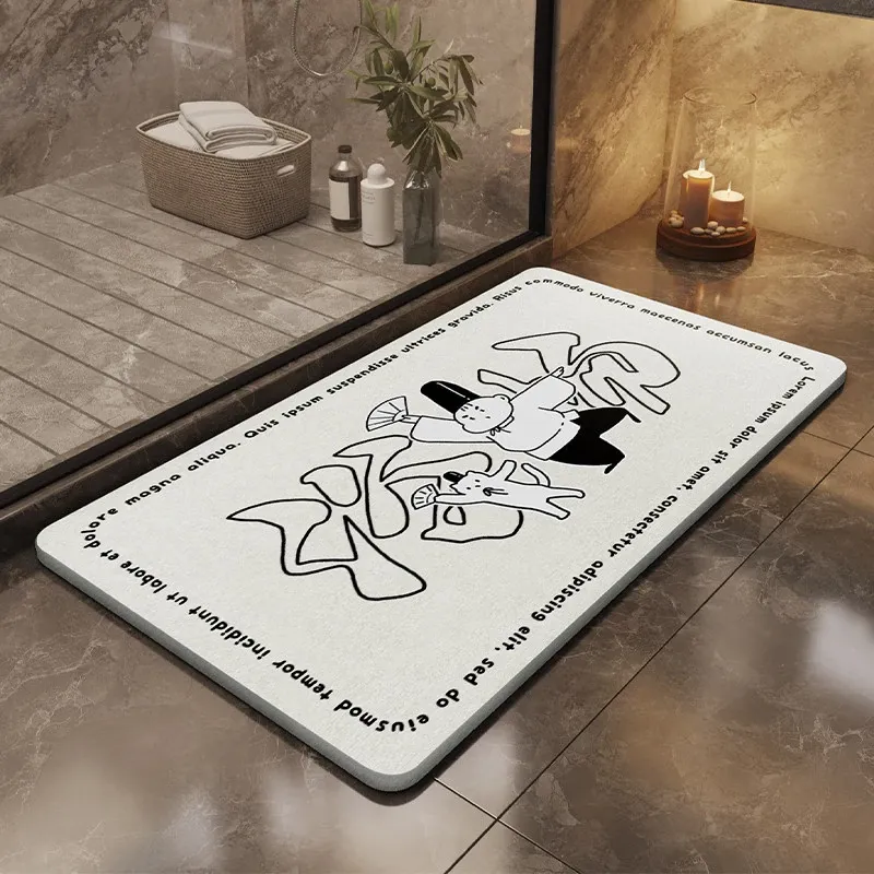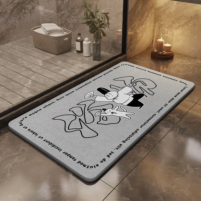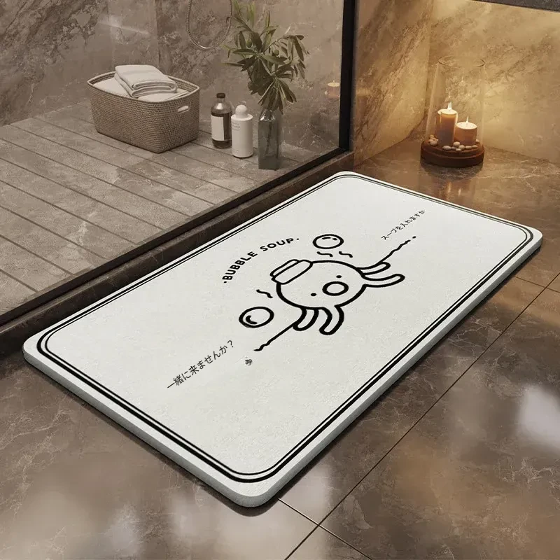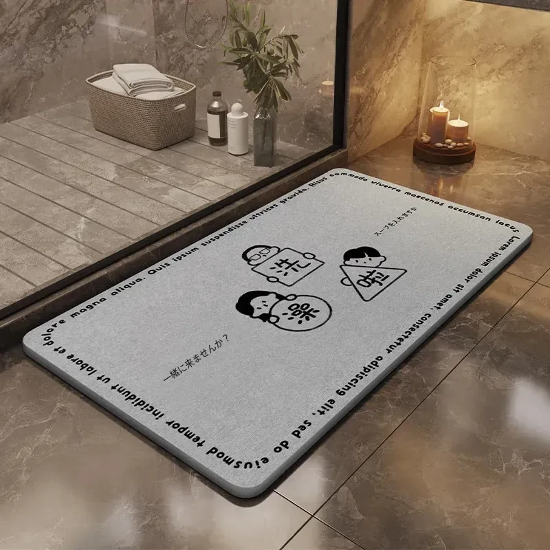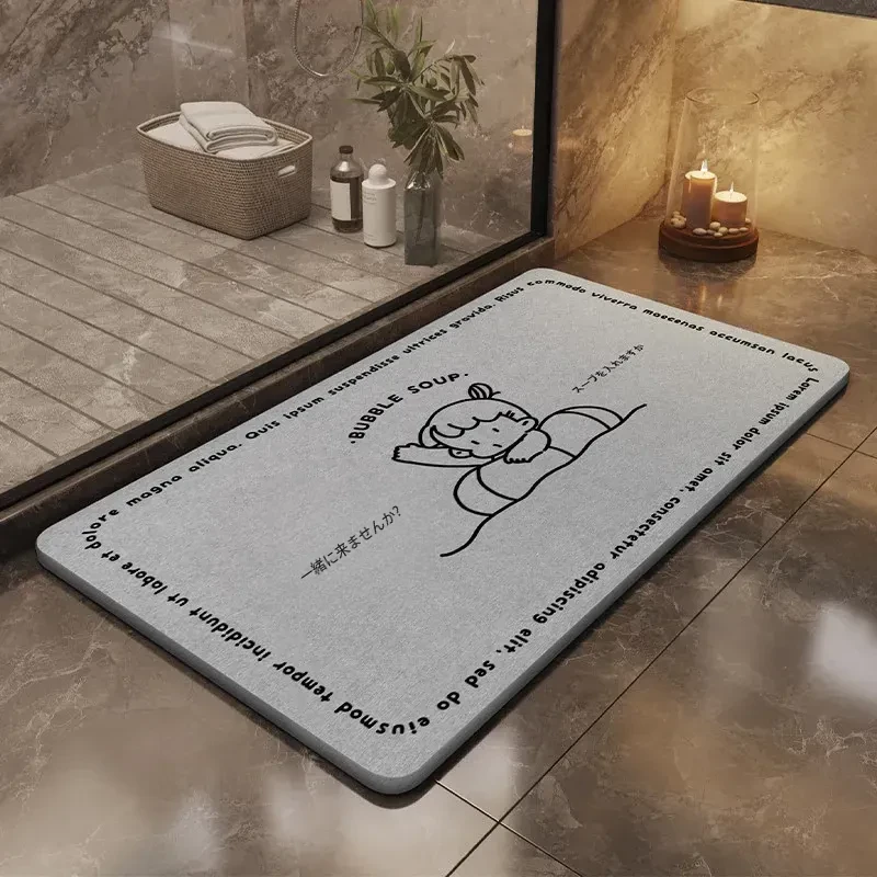 耐汚れで吸水性抜群!硬質シリカ藻マット - 衛生的なバスルーム用滑り止めマット。速乾性で、浴室の入口やトイレに最適なフロアマットです。お洒落なデザインで快適な空間を演出します!