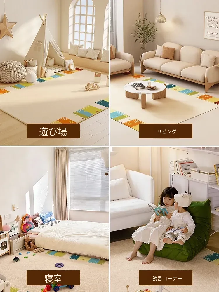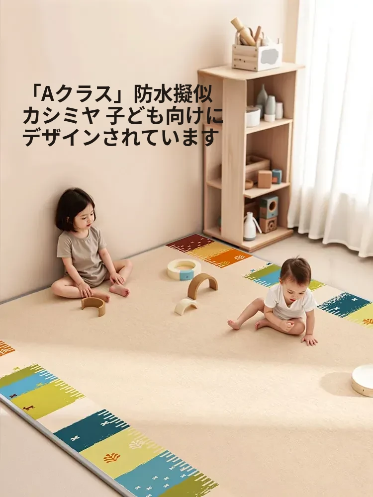 Aタイプの子供用カーペット - リビングや子供部屋に最適!滑り止め付きで、安全性抜群。お手入れ不要の防水マット、羊毛調デザインでおしゃれに!お子様の遊び場を快適に演出します。