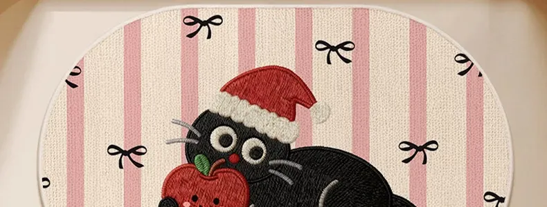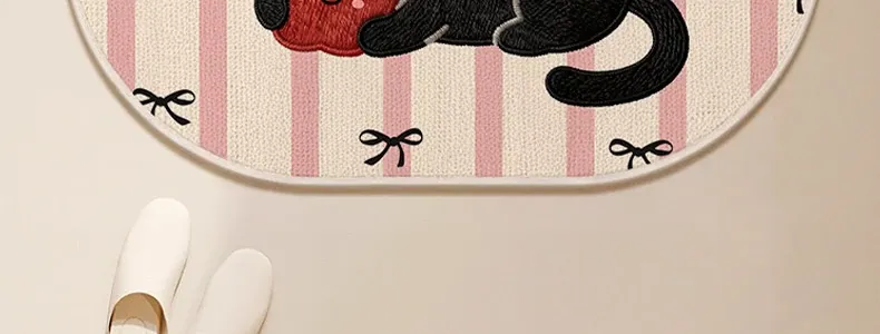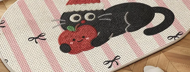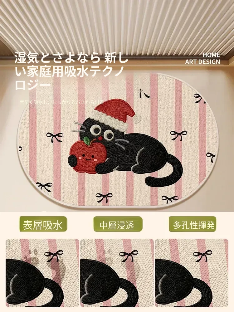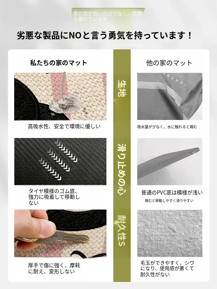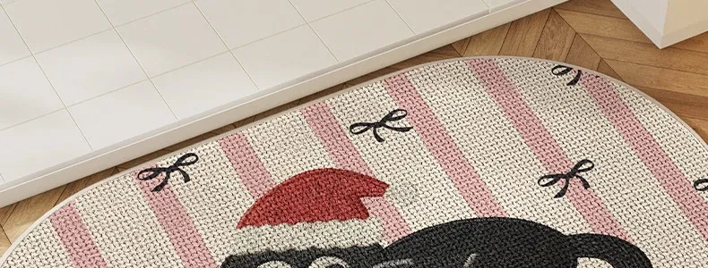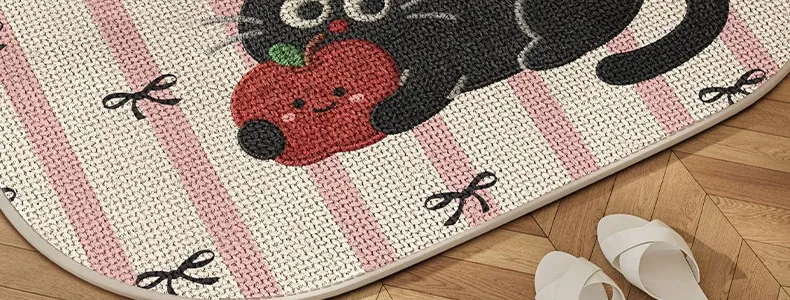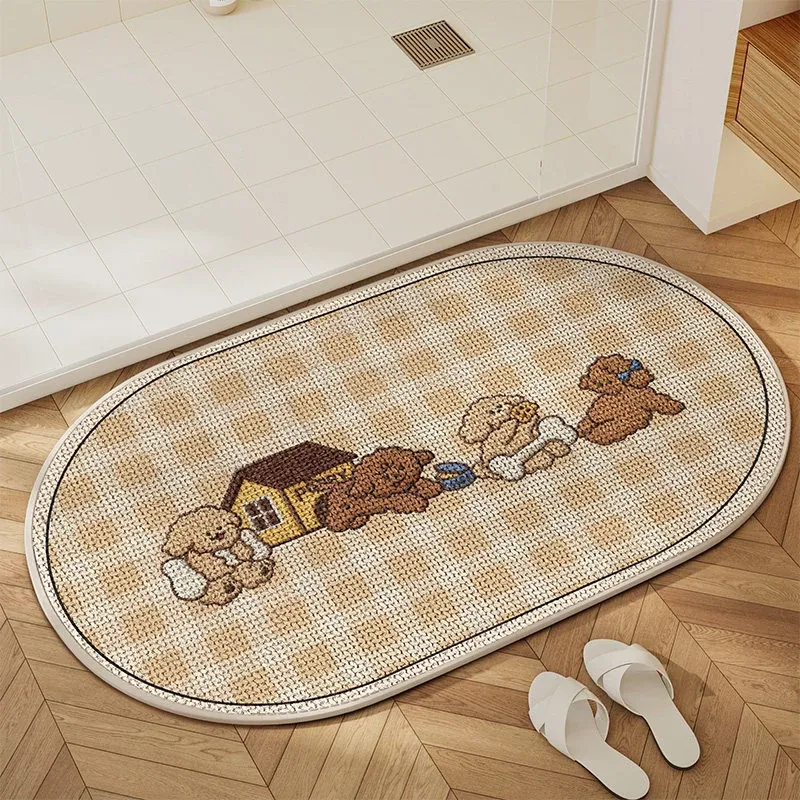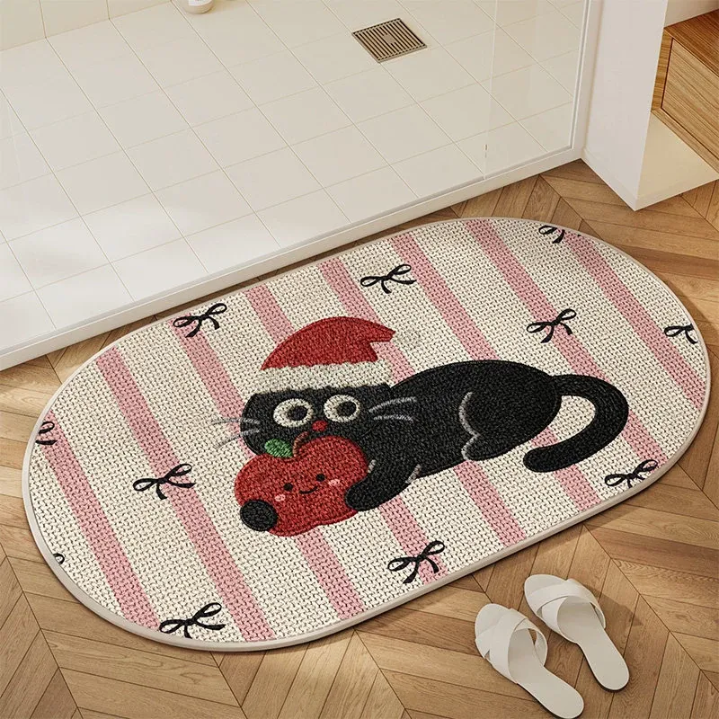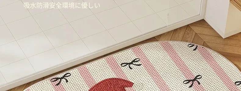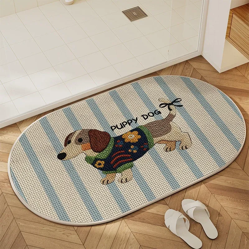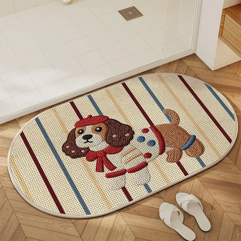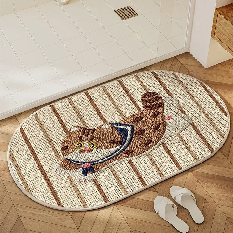 可愛いキャラクター入り!吸水性抜群のリネン製バスマット - おしゃれで安全な滑り止め機能付き、トイレや玄関にぴったりの家庭用マット!