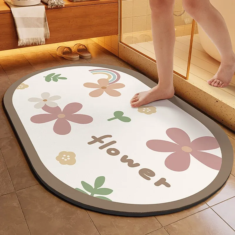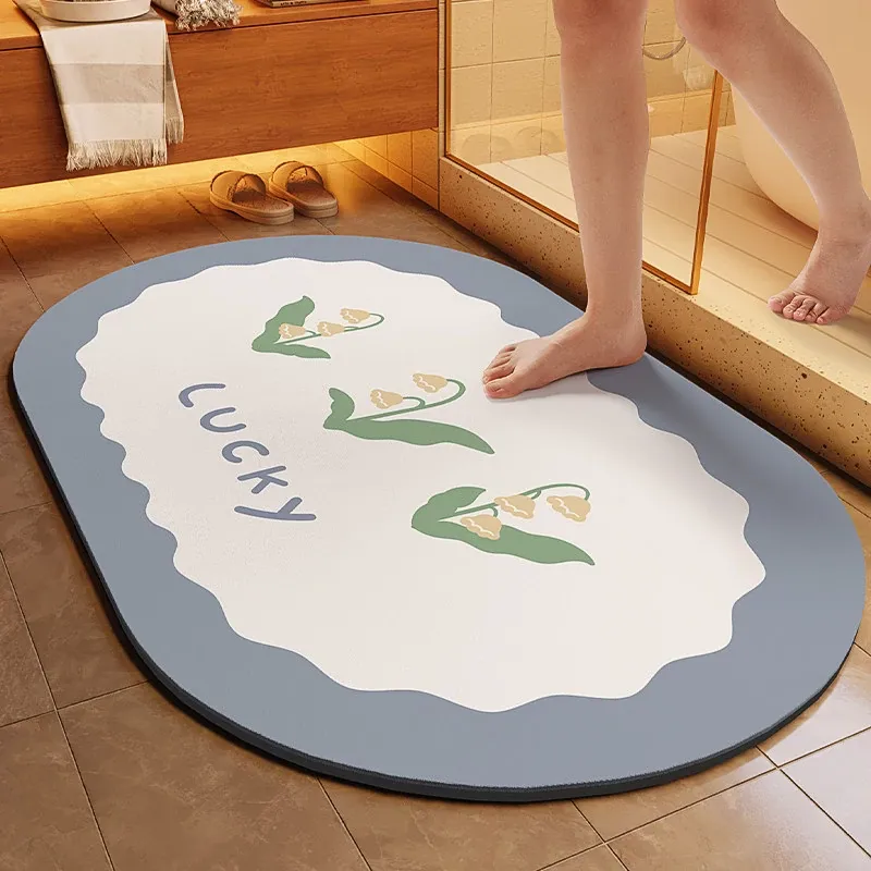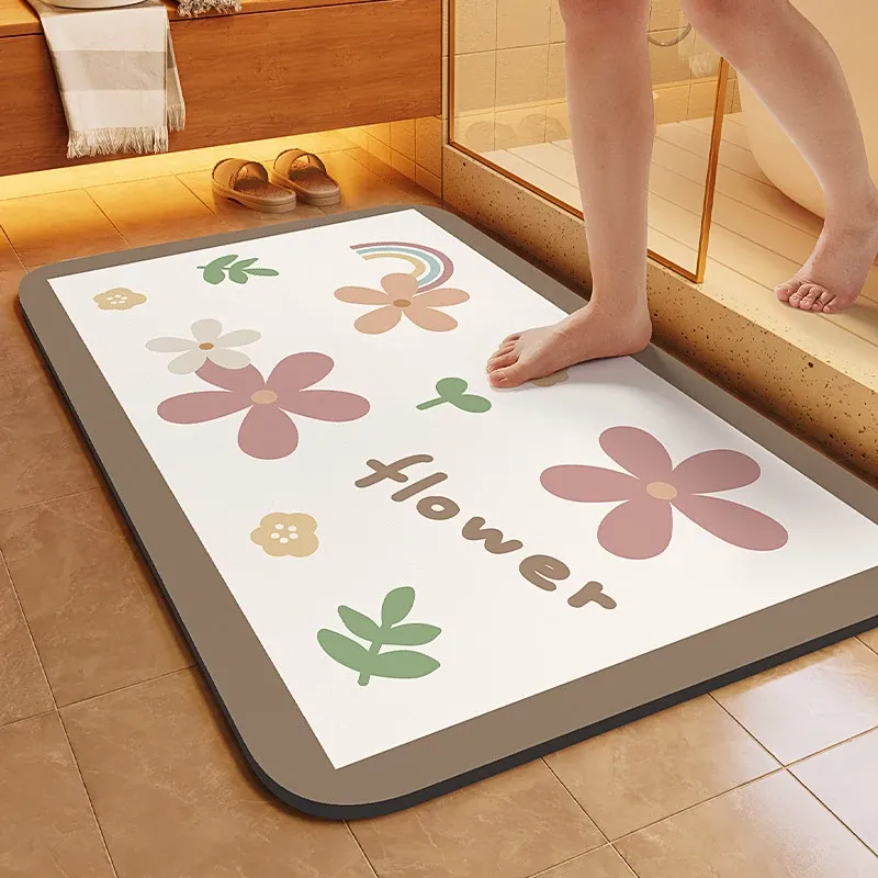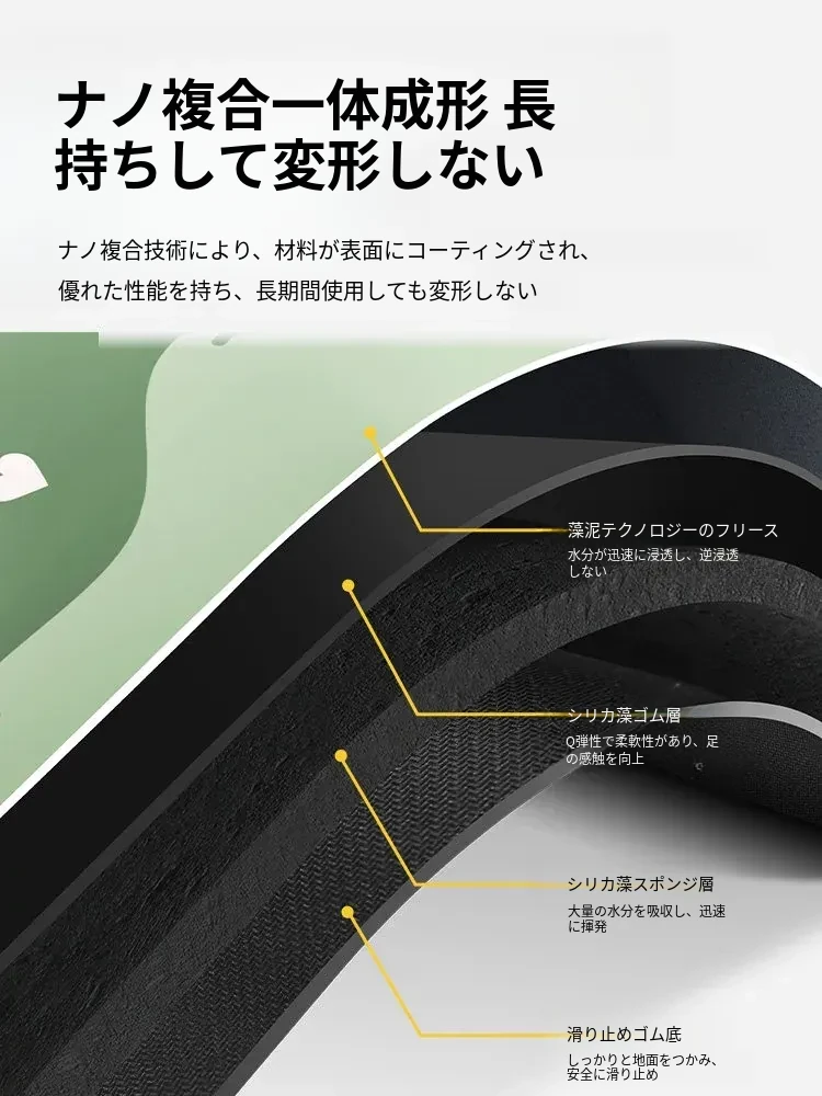 グラフェン製速乾防滑バスマット - 浴室やトイレの玄関に最適!吸水性抜群で、清潔感を保つ快適な足元を提供します。おしゃれで機能的なトイレットマット、あなたのバスルームを一新!