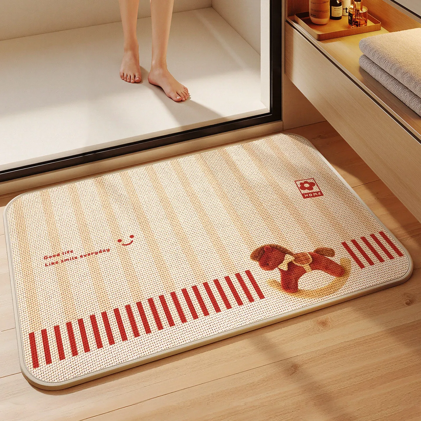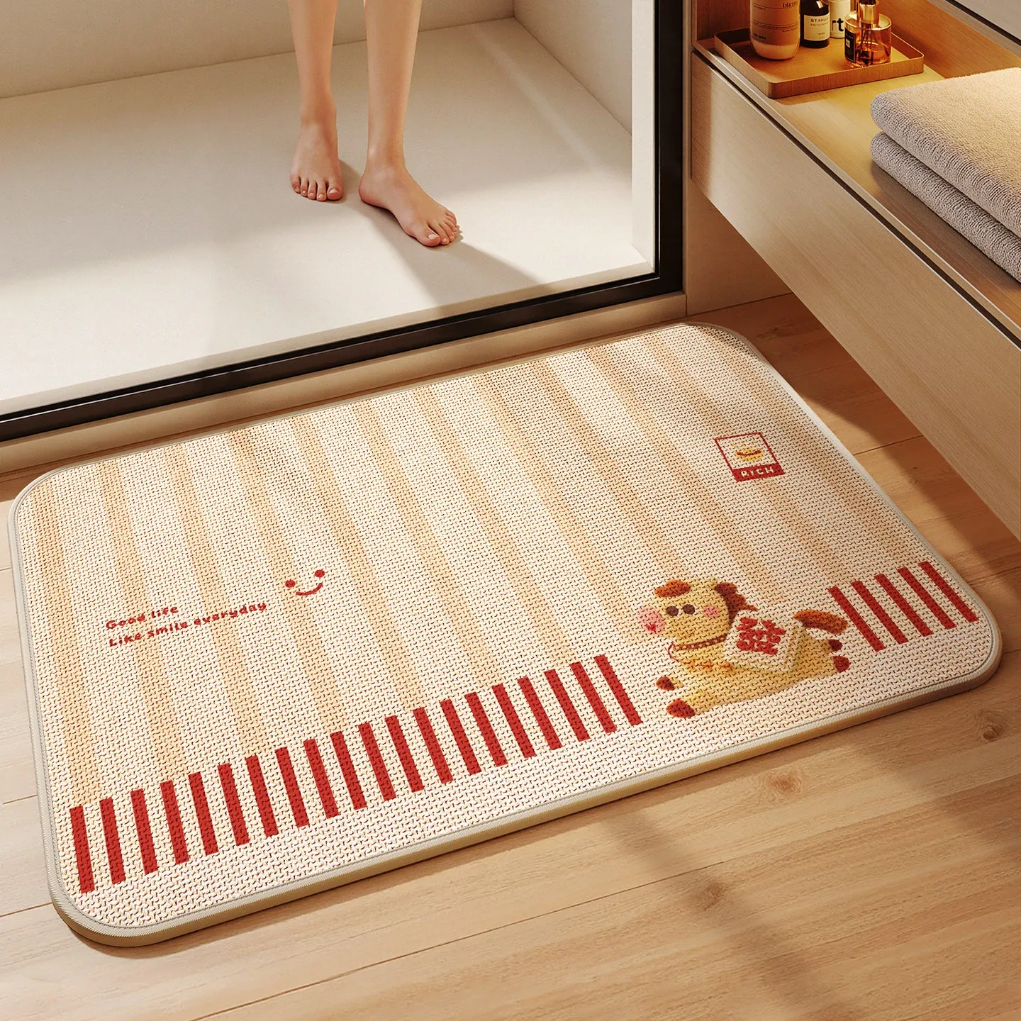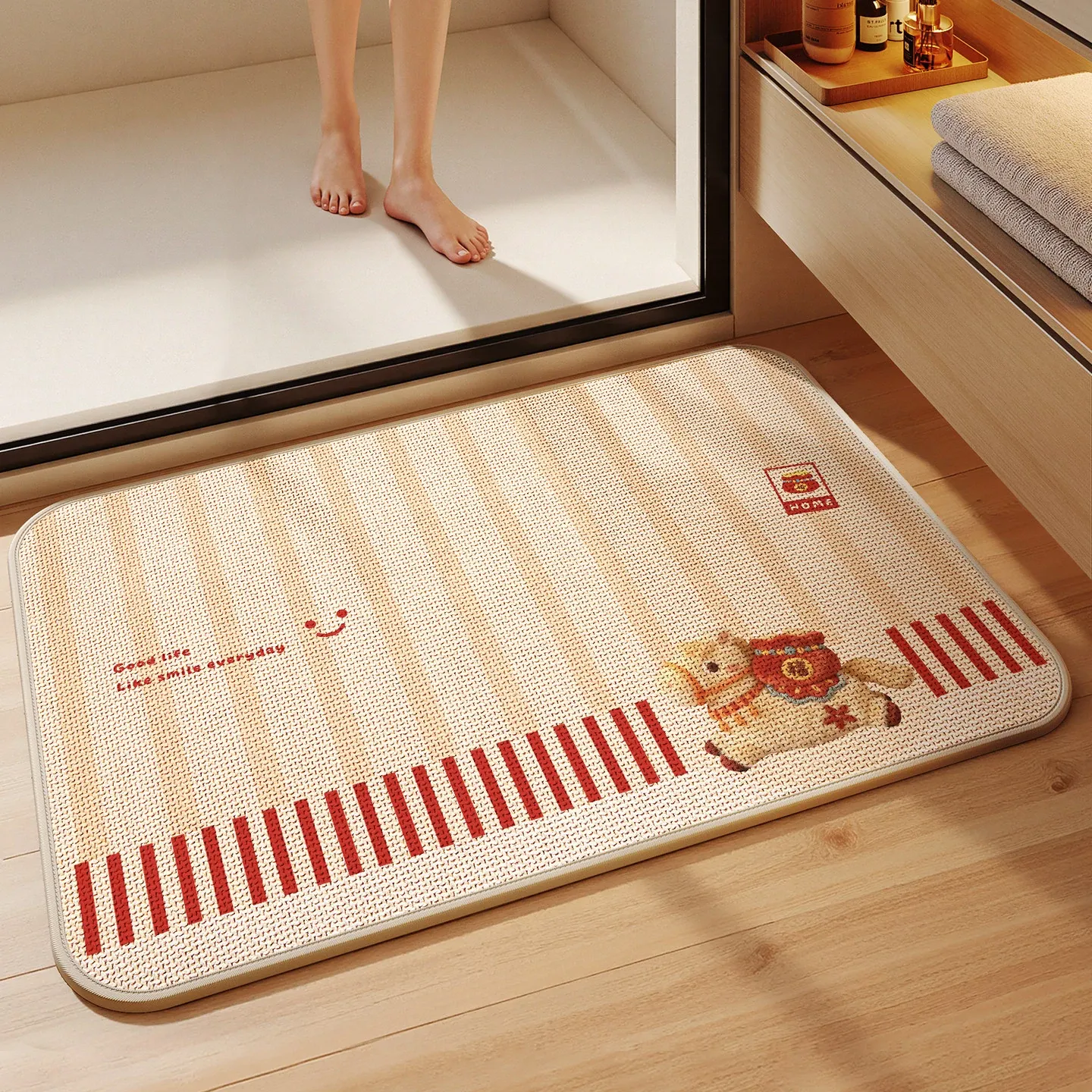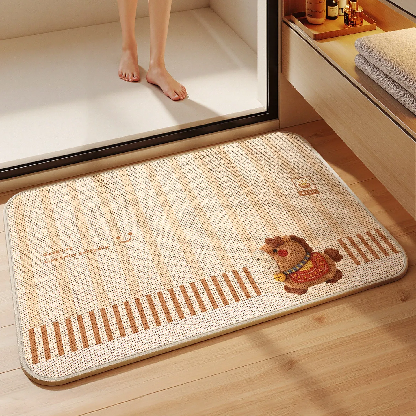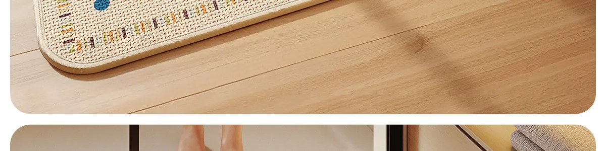 新作!吸水性抜群のデザインバスルームマット - シリカゲル製、リネン編みの防滑トイレマットで、快適な使用感を実現。トイレやバスルームに最適な小型カーペットです!