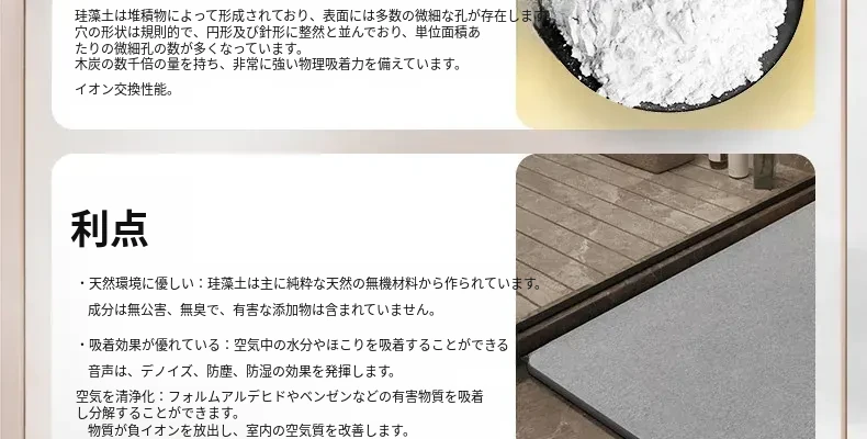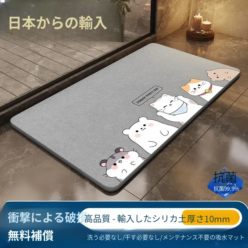 硬質珪藻土バスルーム吸水マット 滑り止めトイレマット 家庭用トイレ洗面所カーペット 衛生的で水分を瞬時に吸収、安心の足元を実現!