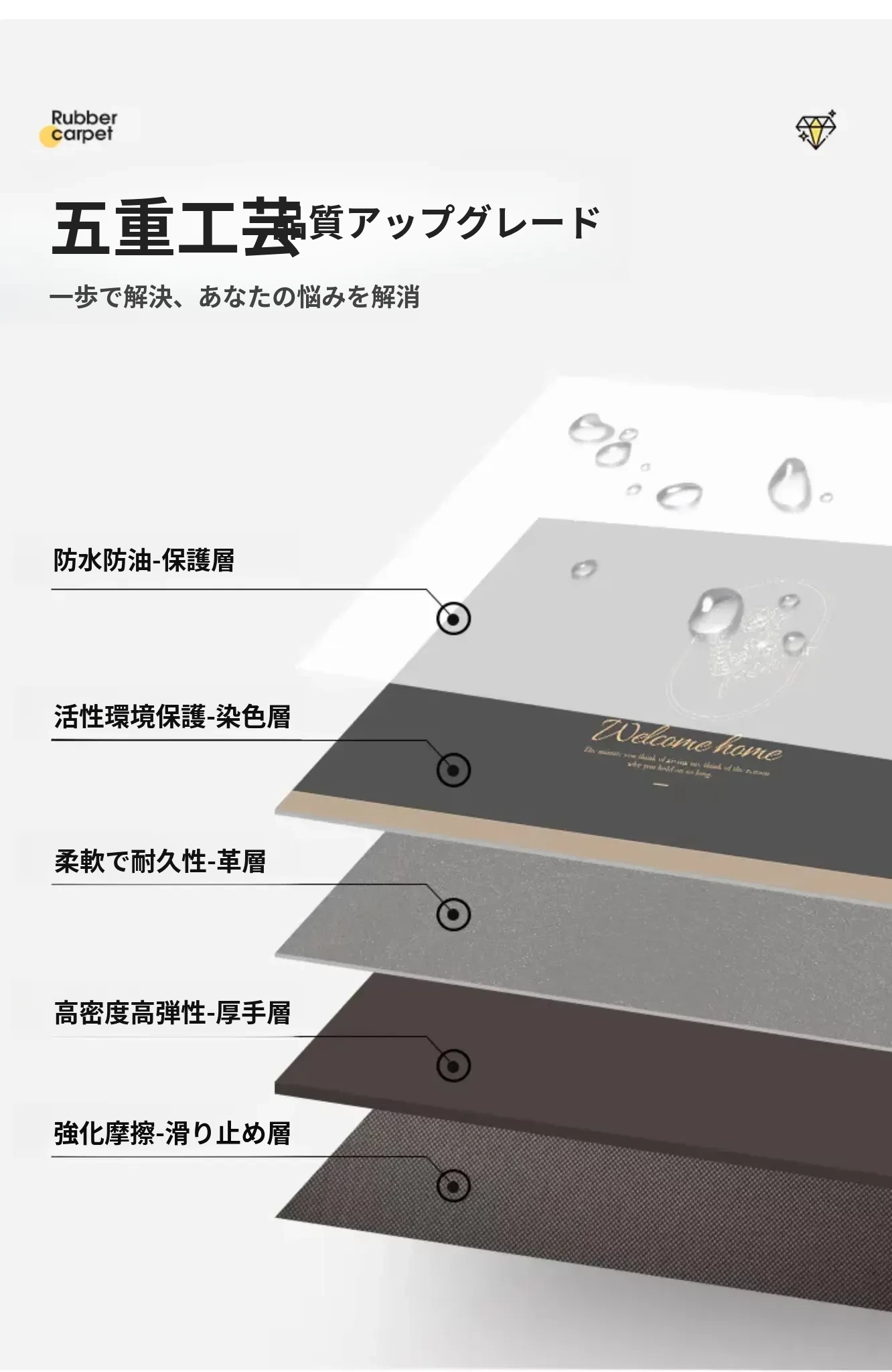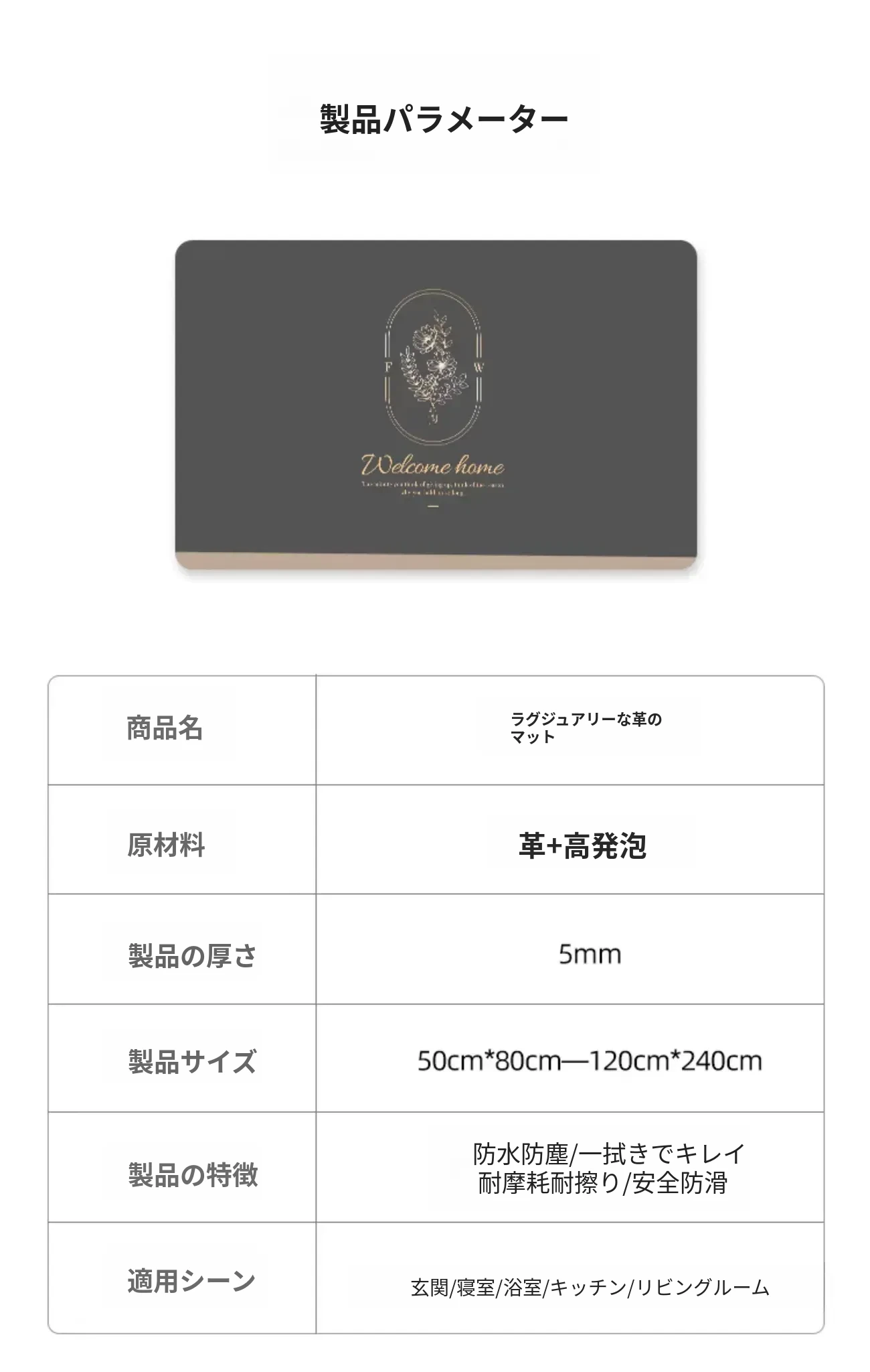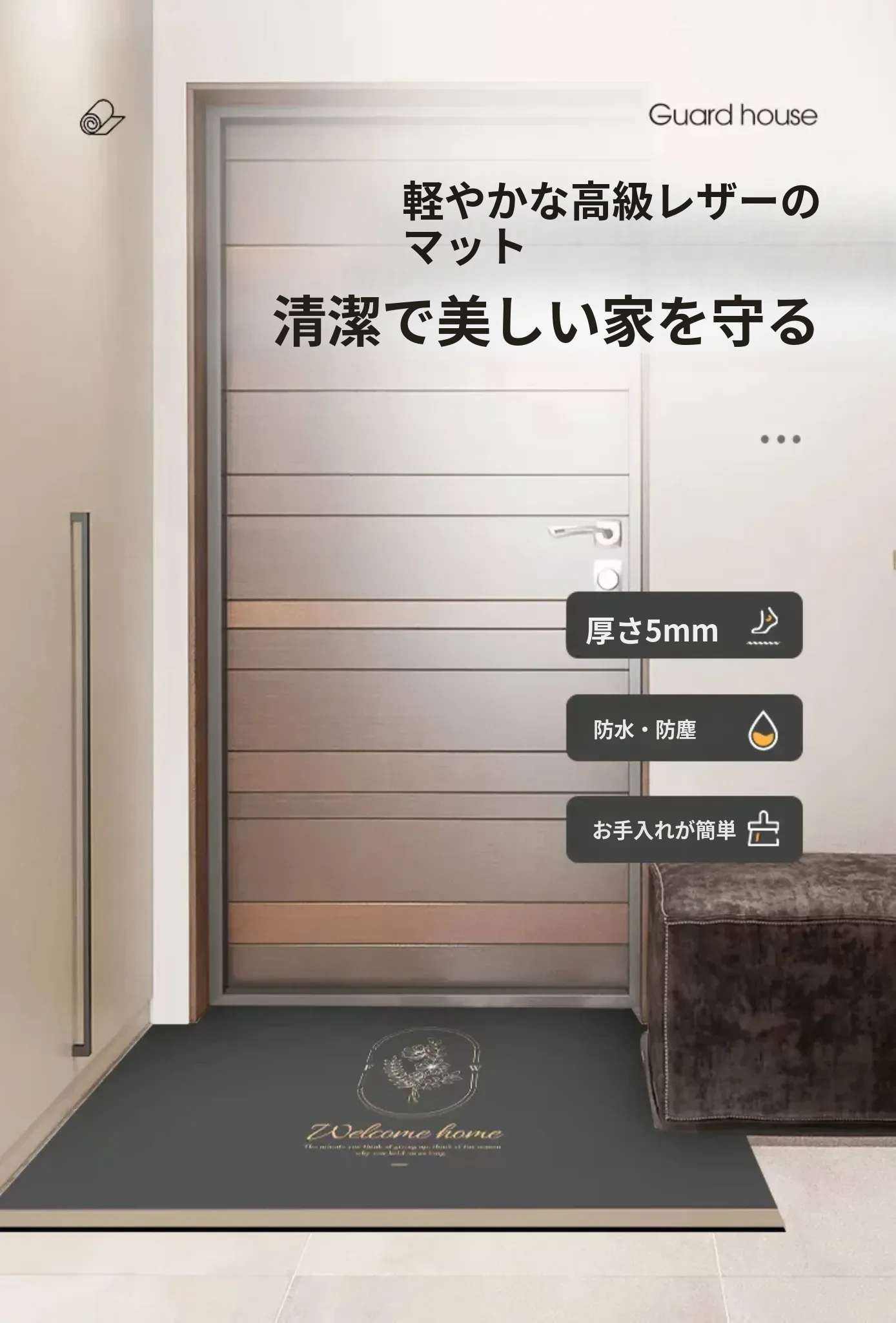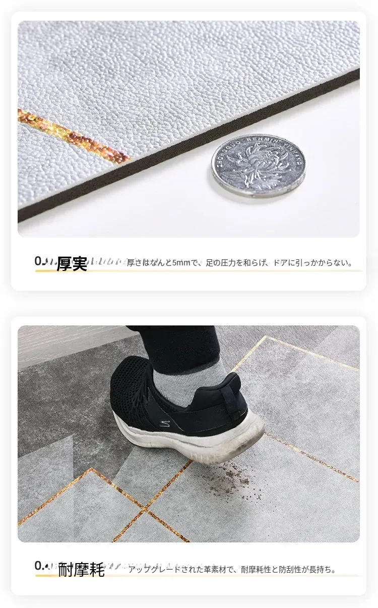 洗わずに使えるラクラクレザー玄関マット|カット可能でお手入れ簡単!高級感溢れるデザインで、家の入り口をスタイリッシュに演出。