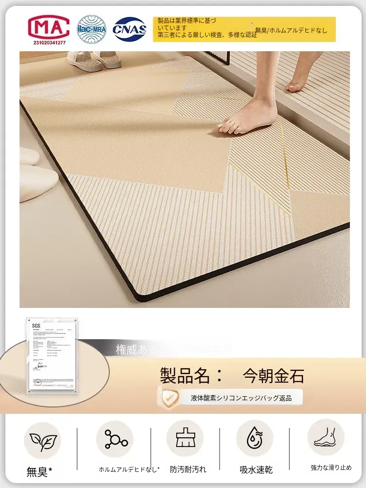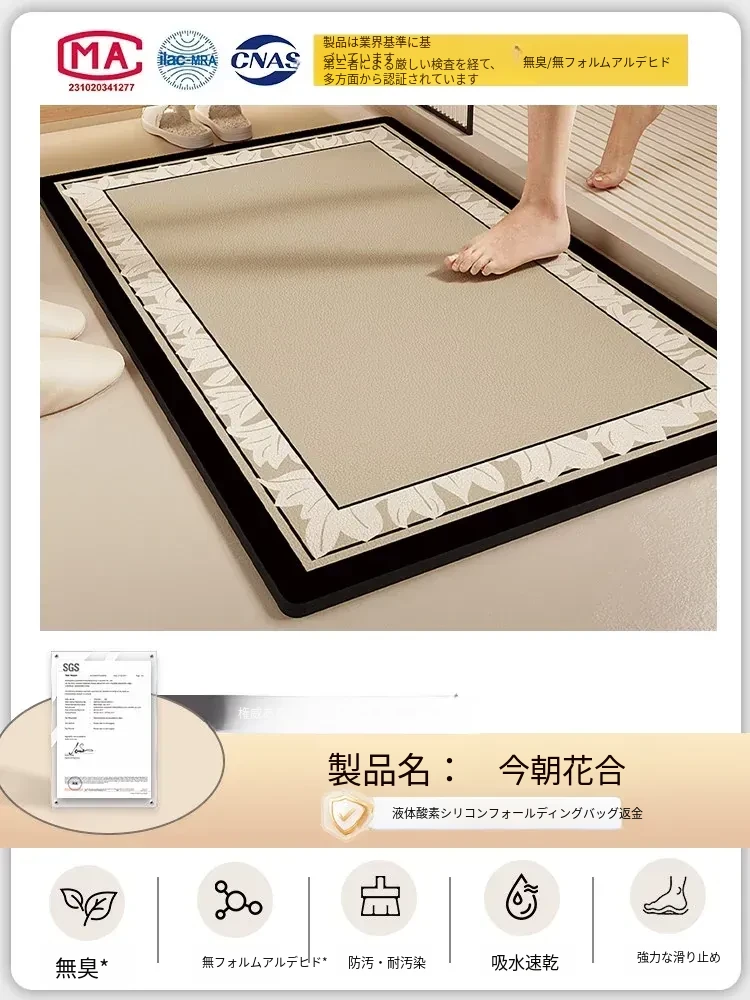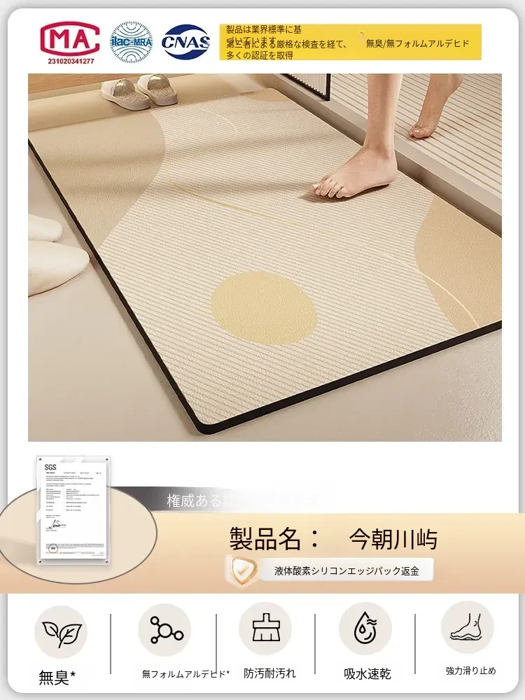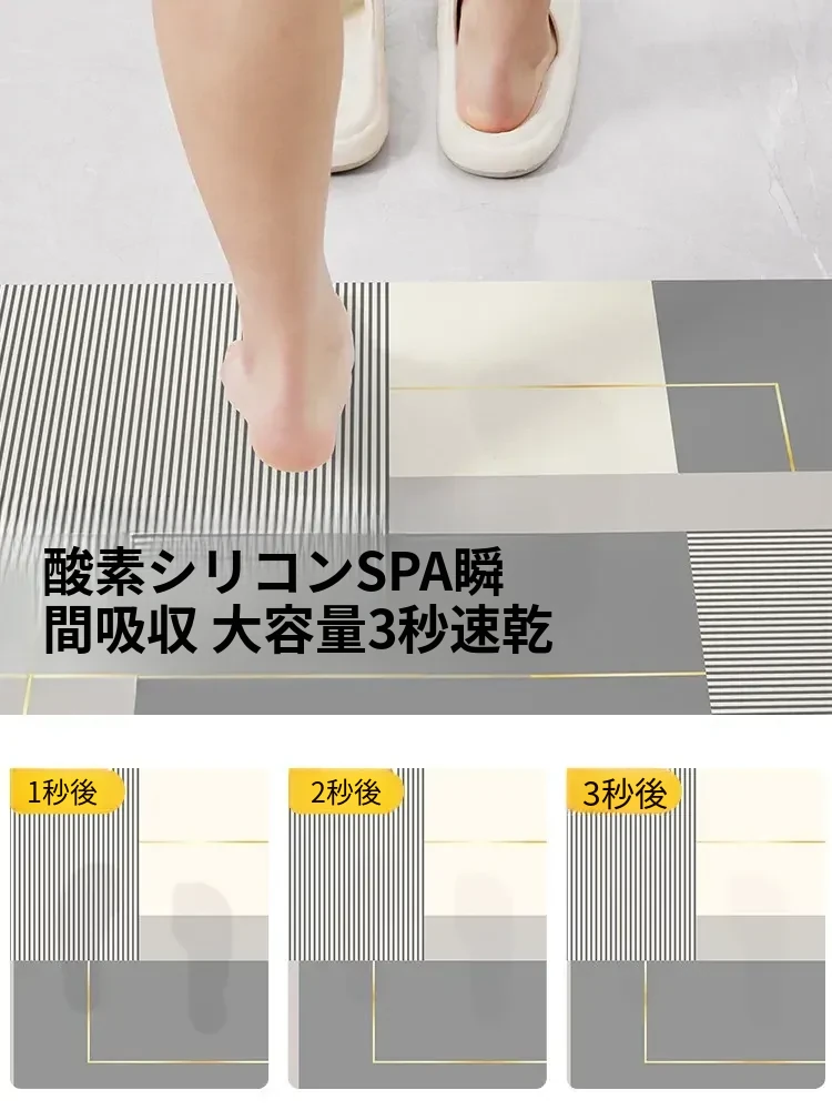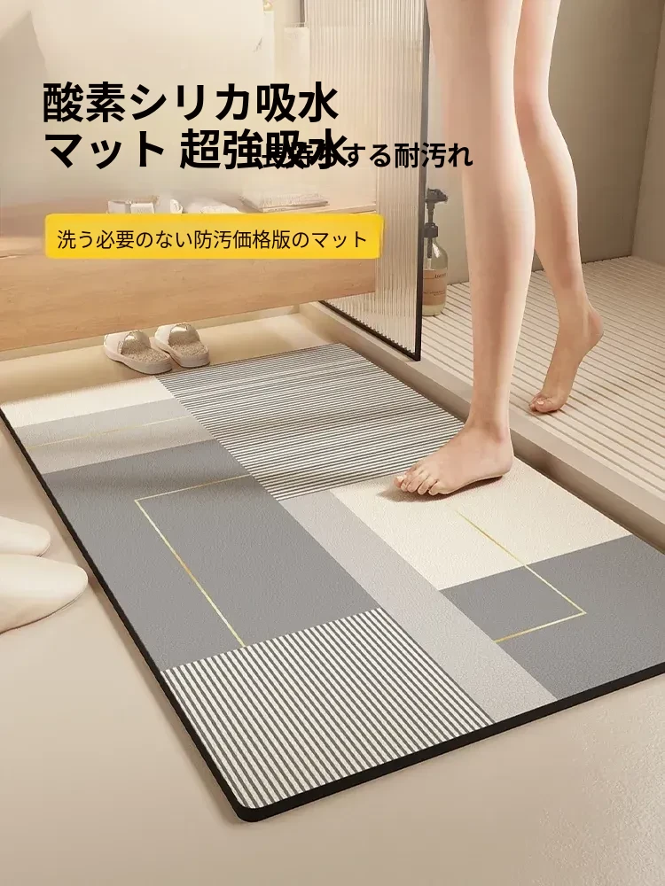 酸素シリコン製バスルーム吸水マット - 滑り止め・速乾性に優れたトイレマット!シンプルでスタイリッシュ、エントランスにもぴったり。清潔で快適な空間を演出します!