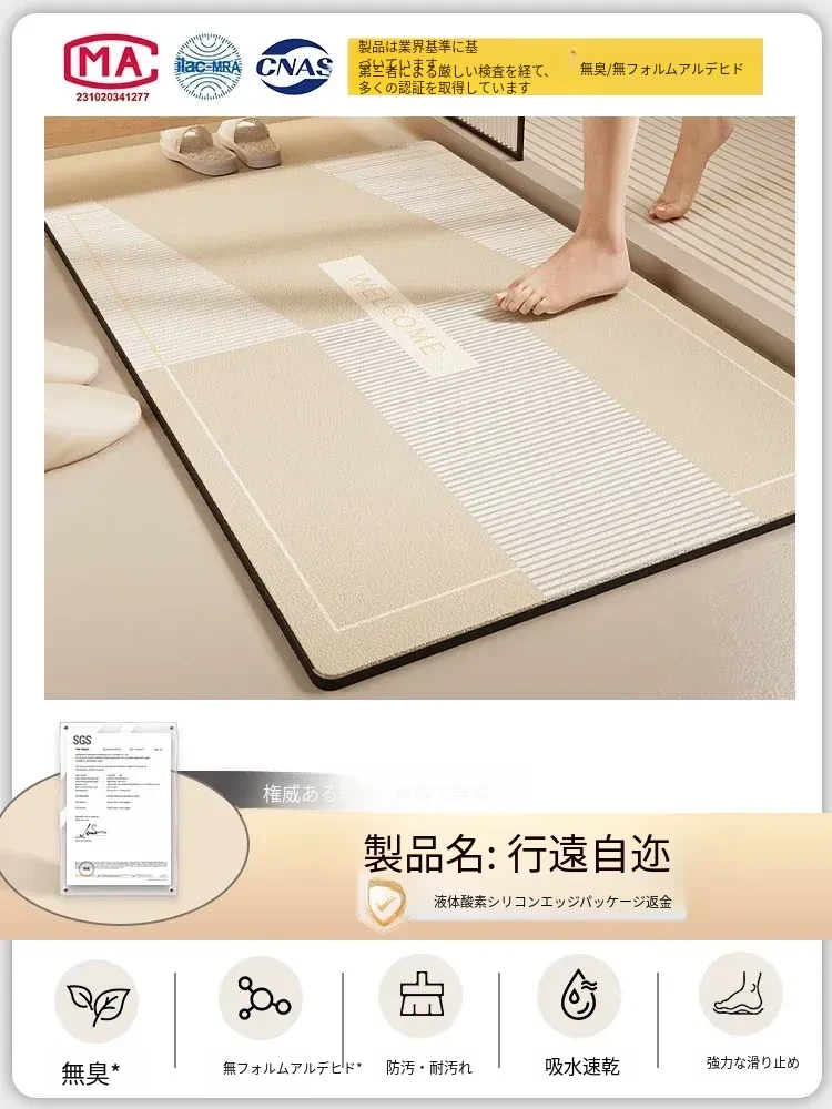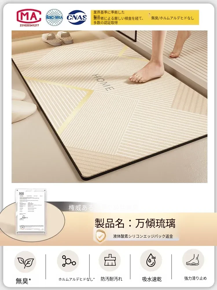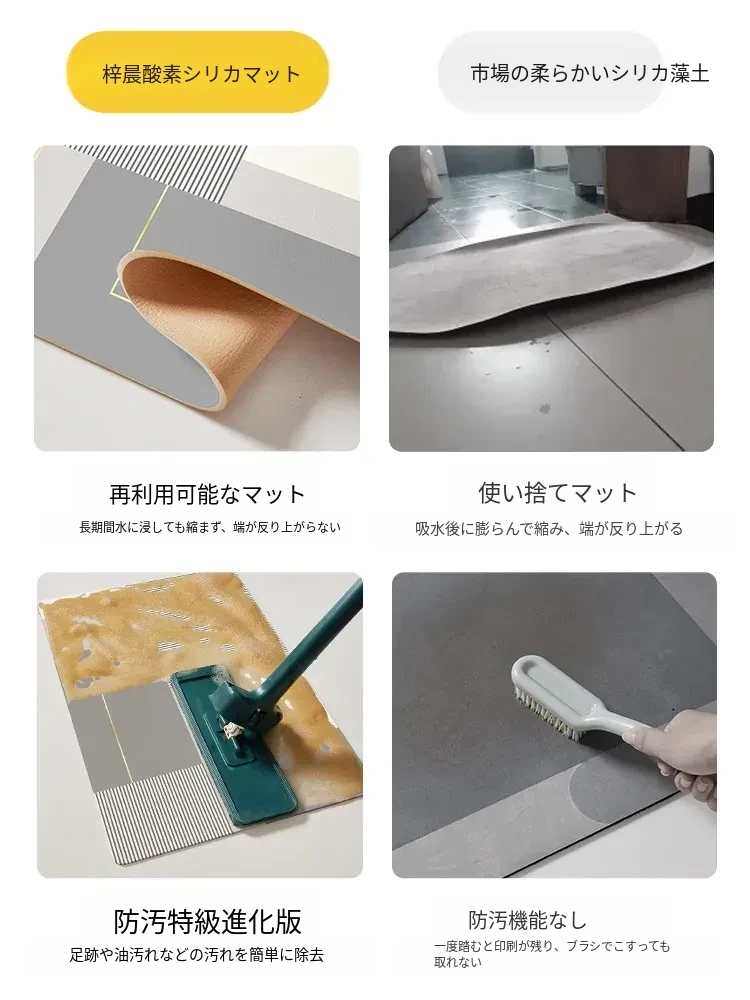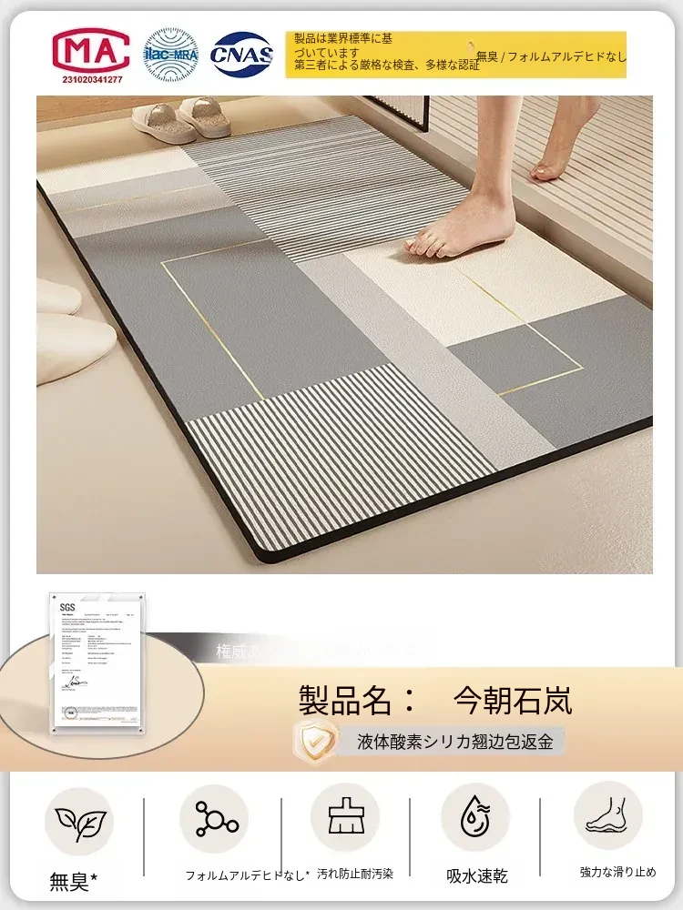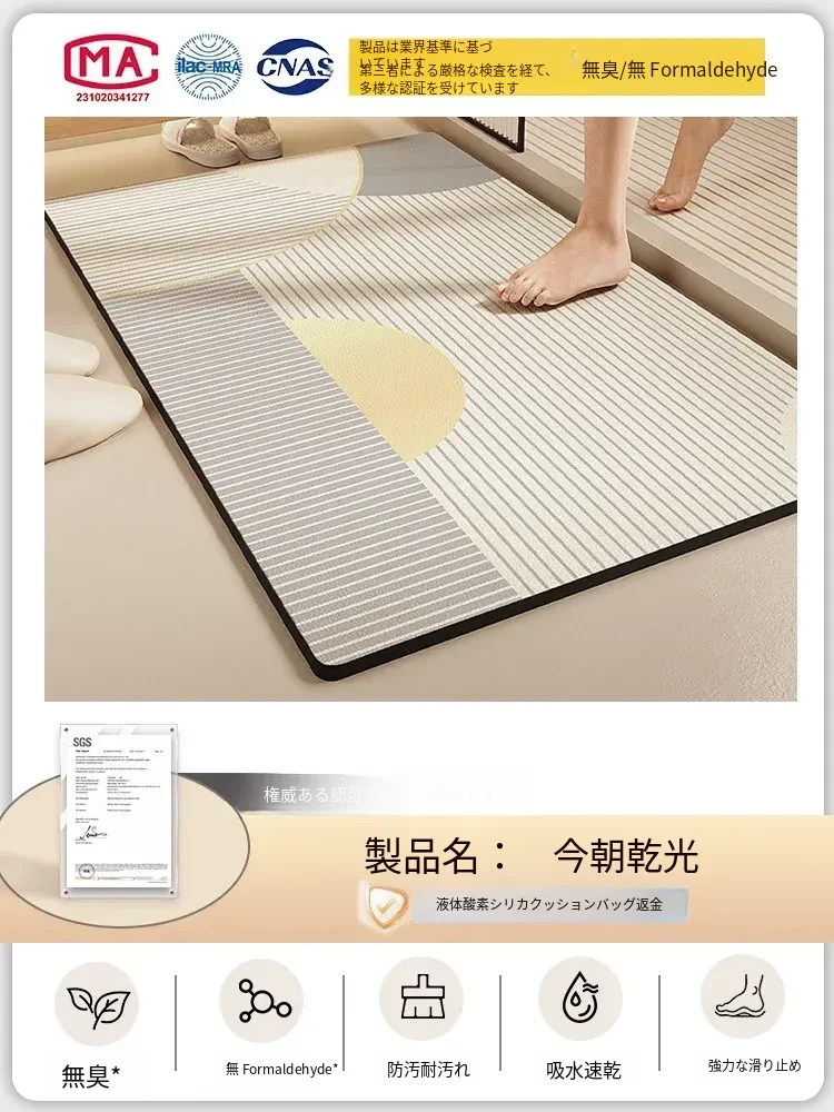 酸素シリコン製バスルーム吸水マット - 滑り止め・速乾性に優れたトイレマット!シンプルでスタイリッシュ、エントランスにもぴったり。清潔で快適な空間を演出します!