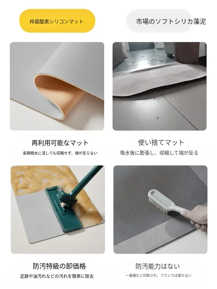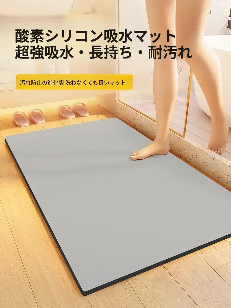 酸素シリコン製バスルームマット!吸水性抜群で滑り止め効果もあり、家庭用トイレやバスルームに最適。お手入れ簡単で、毎日の快適さを提供します。おしゃれで実用的な玄関マットとしてもおすすめ!