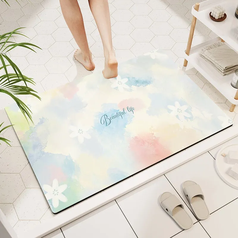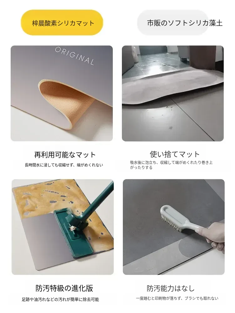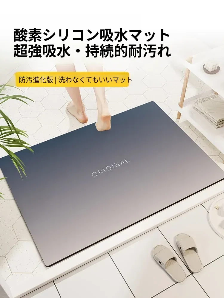 高吸水速乾!酸素シリコン製トイレマット - 滑り止め機能付きで安心、バスルームやトイレに最適な家庭用マット!快適な使用感を実現!