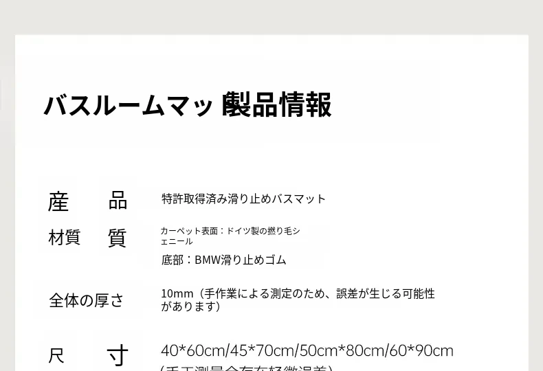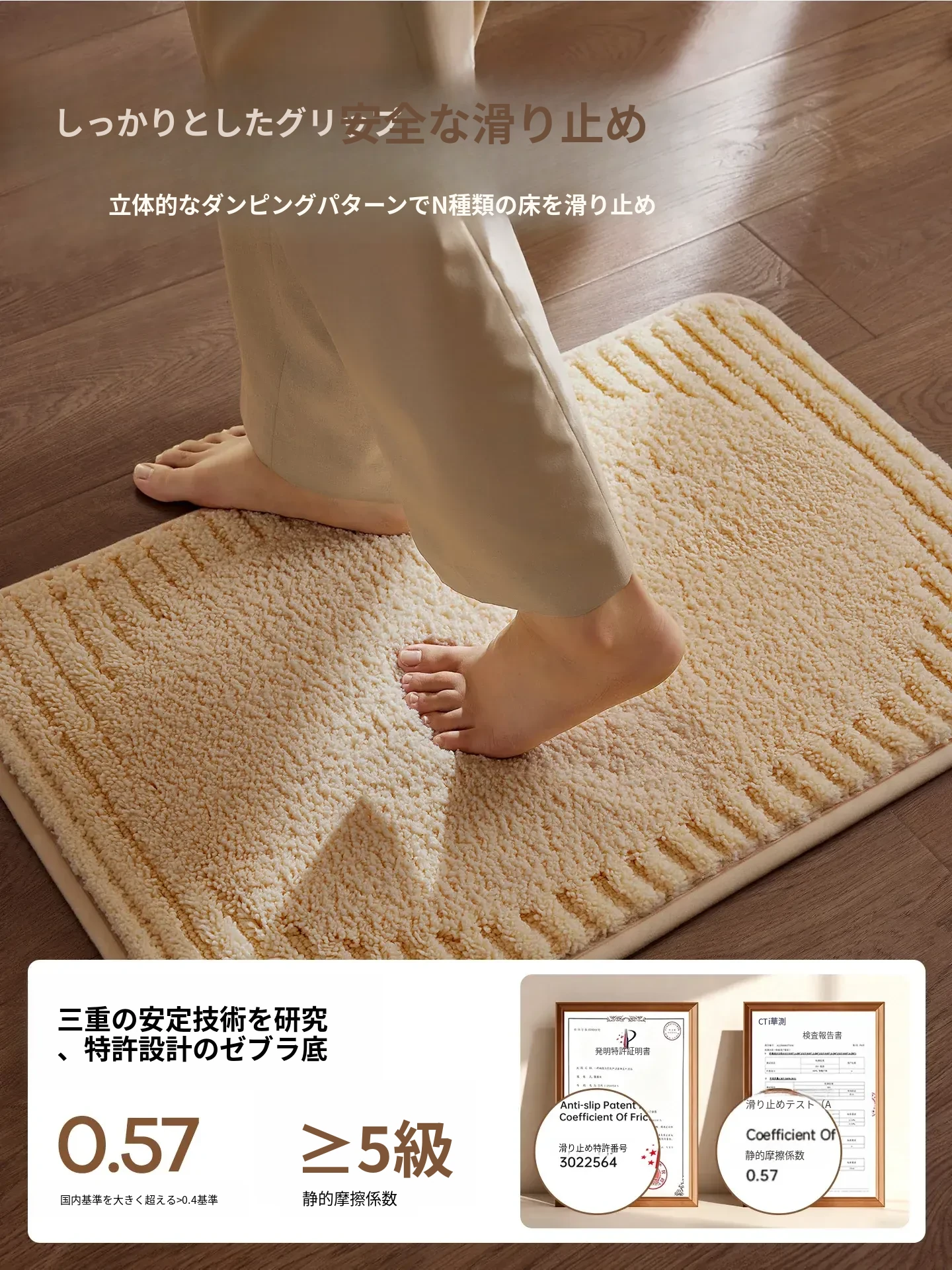 【特許取得!滑り止め効果】吸水速乾バスマット - トイレや浴室に最適!玄関マットとしても使用可能、清潔で安全な空間を提供します。