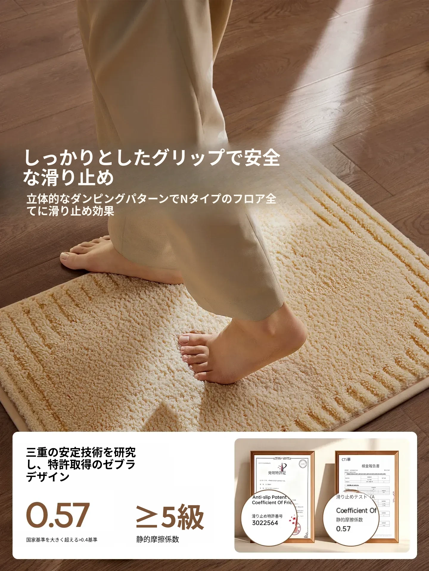 【特許取得☆滑り止め】バスルームマット 吸水性抜群 トイレ用フロアマット 洗面所用ドアマット 滑らない安心設計で、快適なバスタイムをサポート!