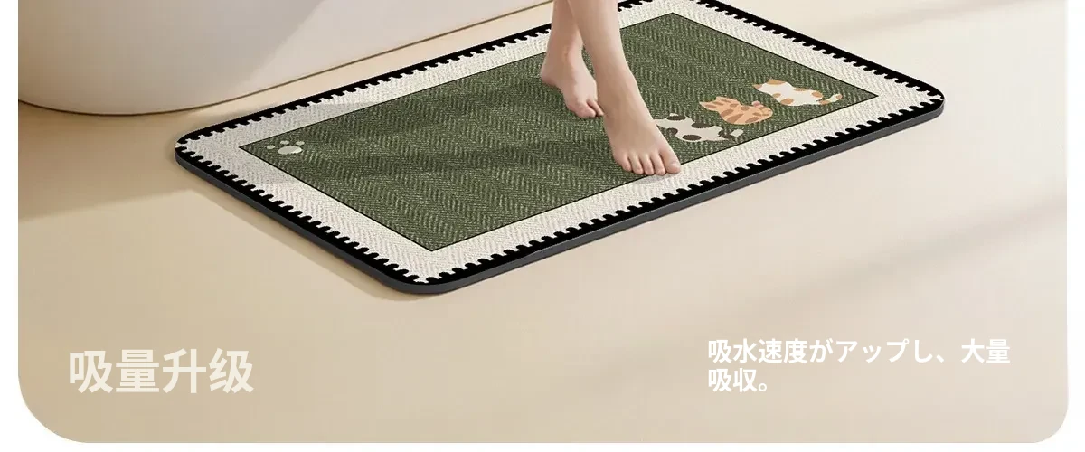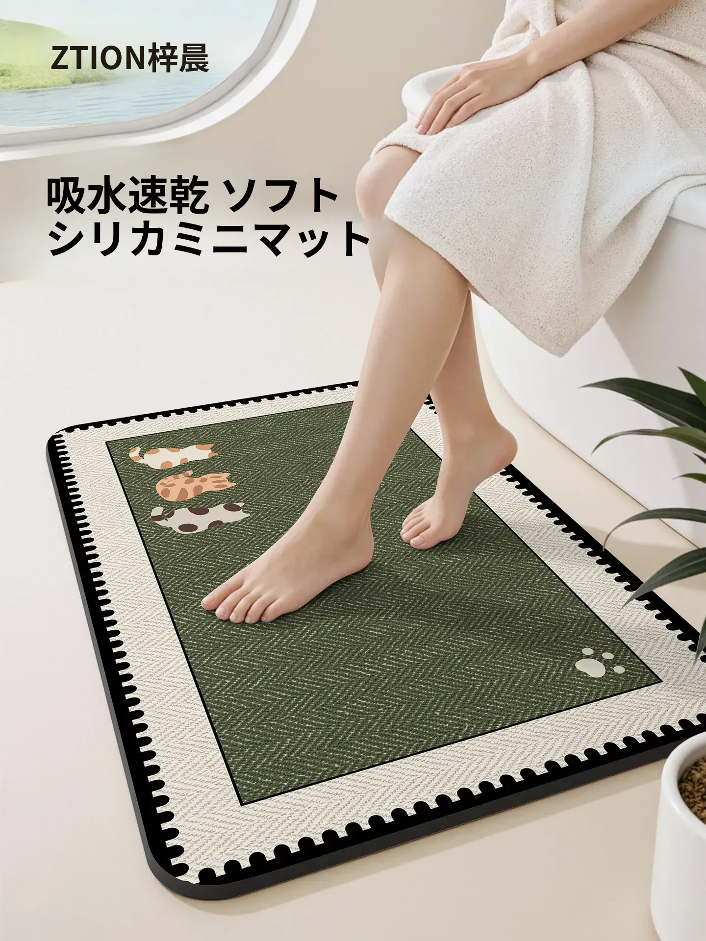 バスルーム用吸水マット|新型高級トイレ用ソフトシリカゲルマット|滑り止め付き|快適な足元を実現!おしゃれなデザインでお家のバスルームをグレードアップ!