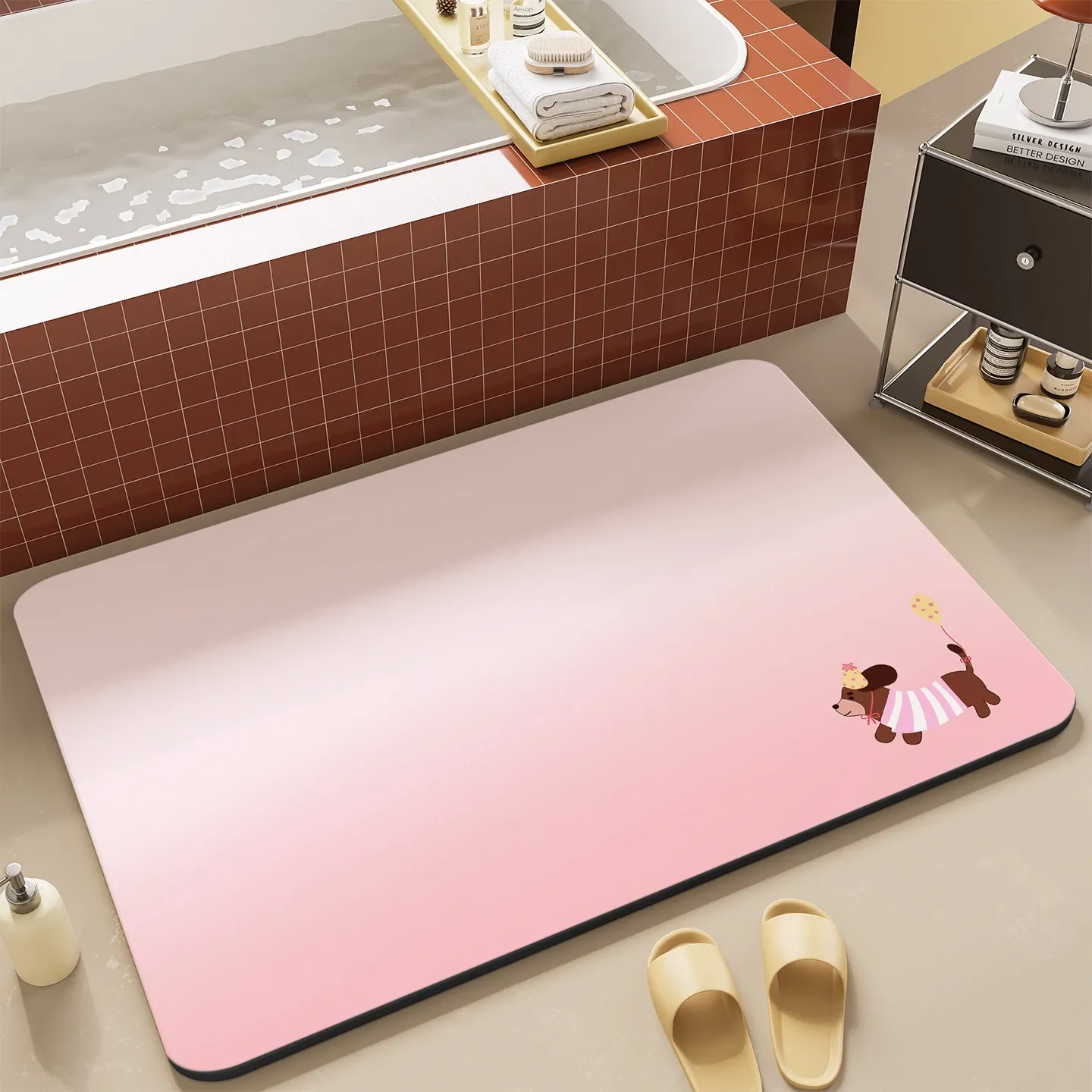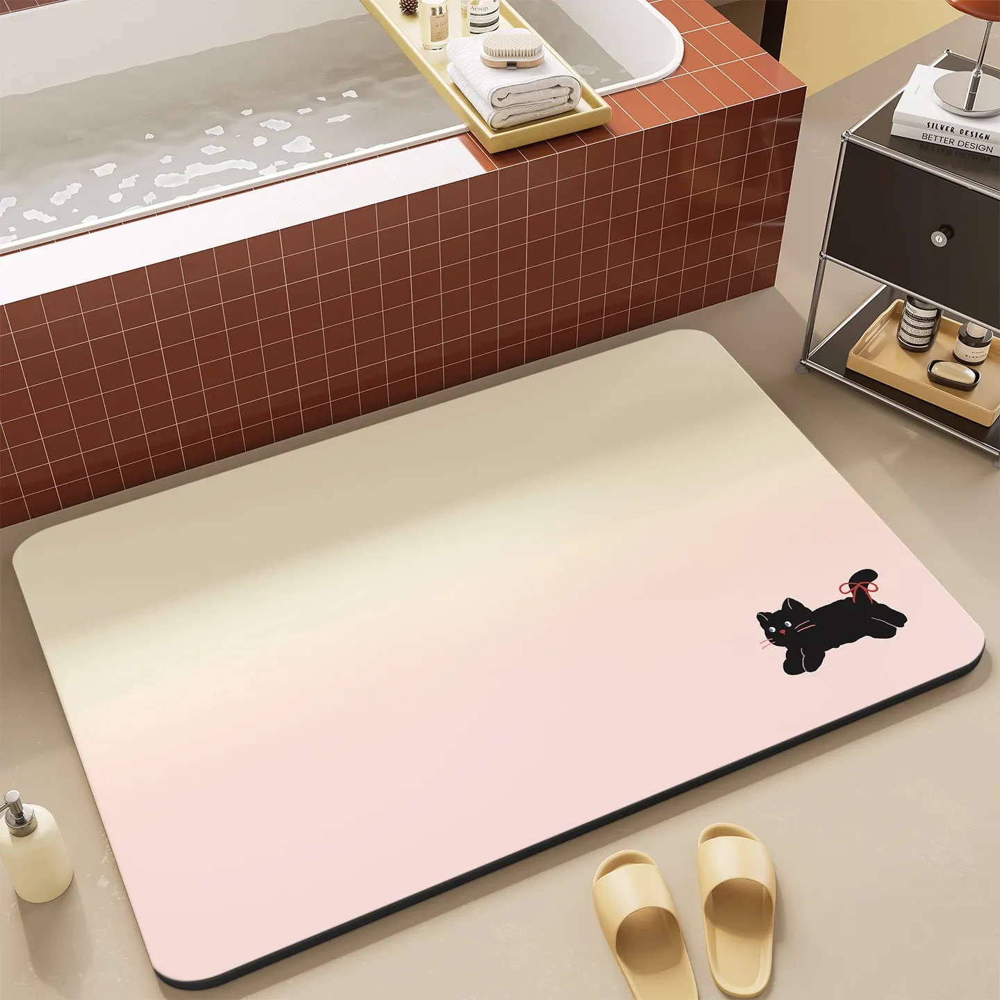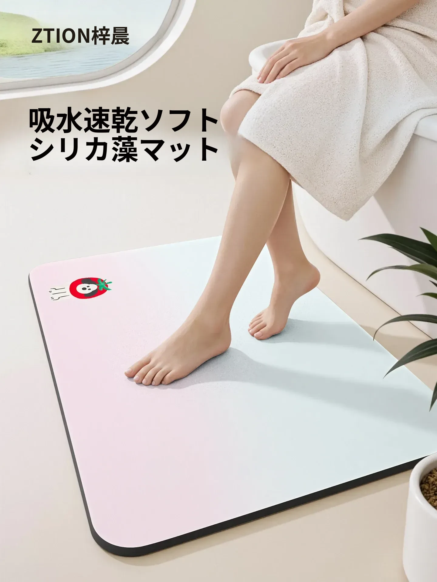滑り止め機能付き!おしゃれで吸水性抜群のバスルームマット - お風呂やトイレに最適なシリカゲル素材の足元マット。快適な衛生環境を実現し、洗面所の雰囲気を一新!
