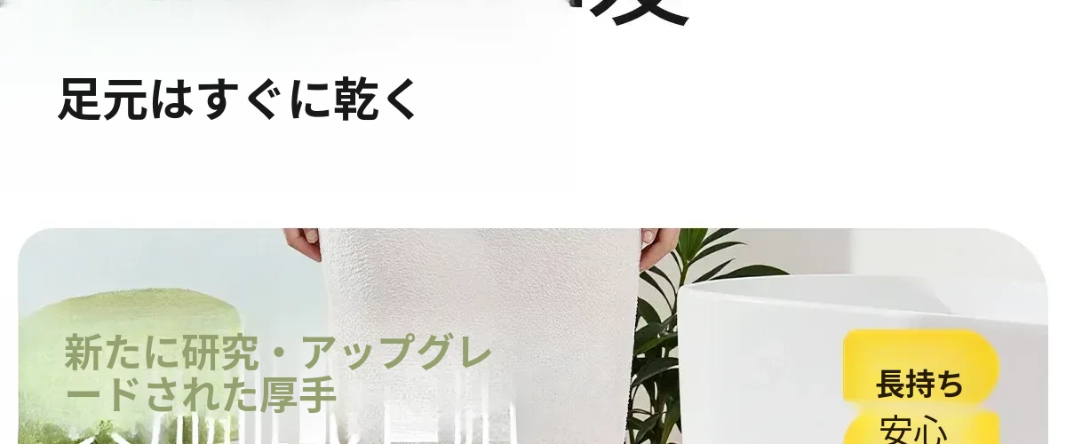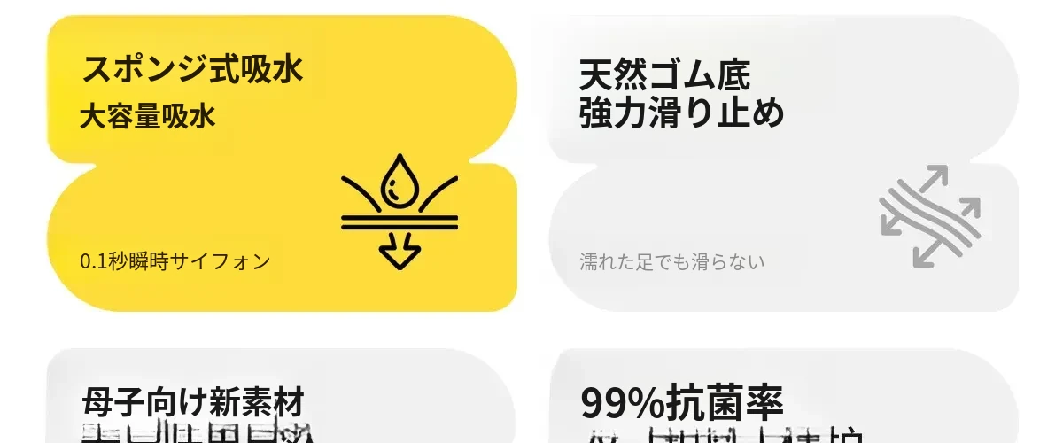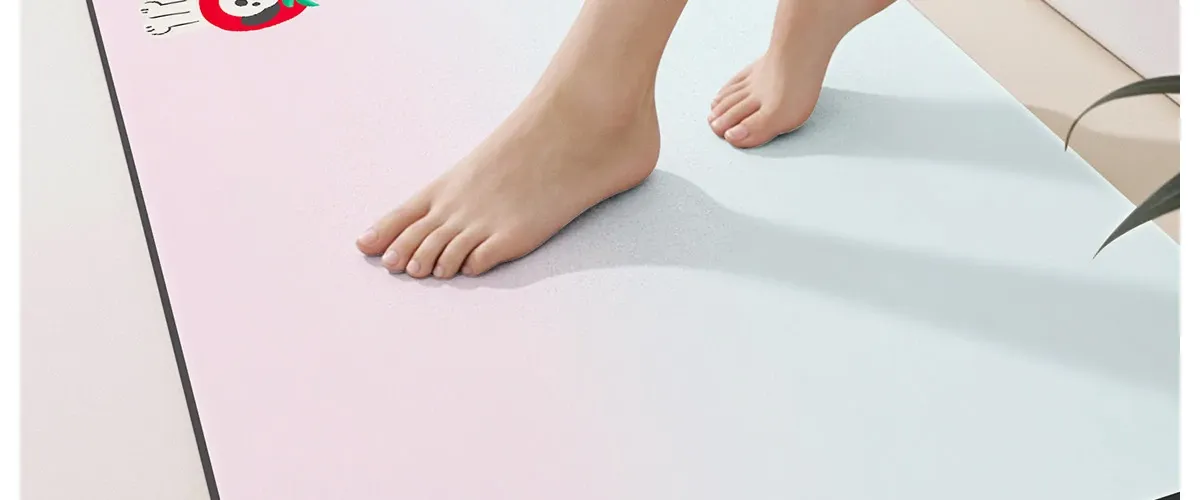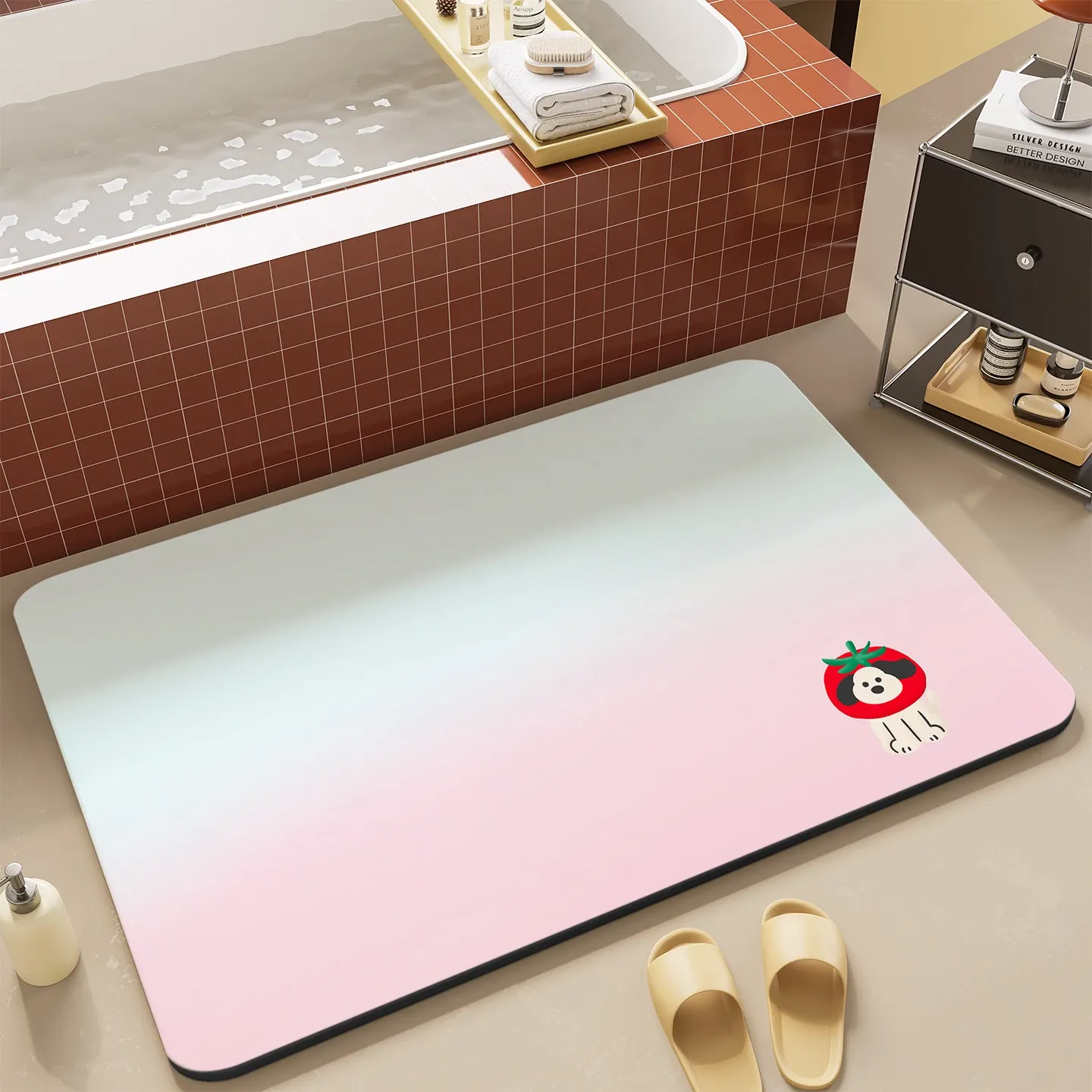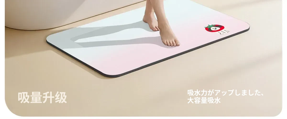 滑り止め機能付き!おしゃれで吸水性抜群のバスルームマット - お風呂やトイレに最適なシリカゲル素材の足元マット。快適な衛生環境を実現し、洗面所の雰囲気を一新!