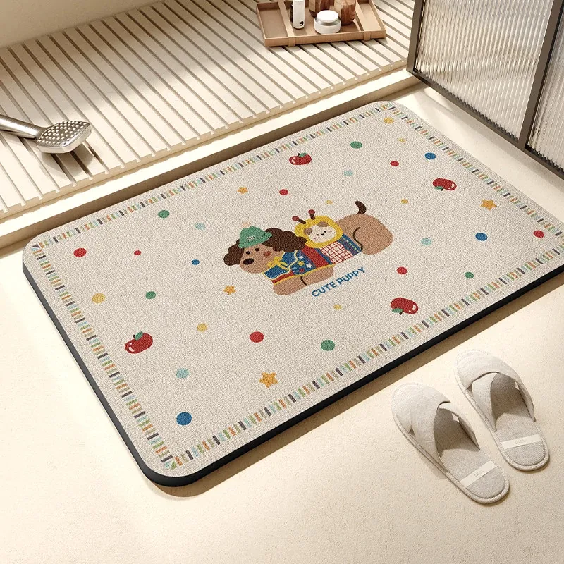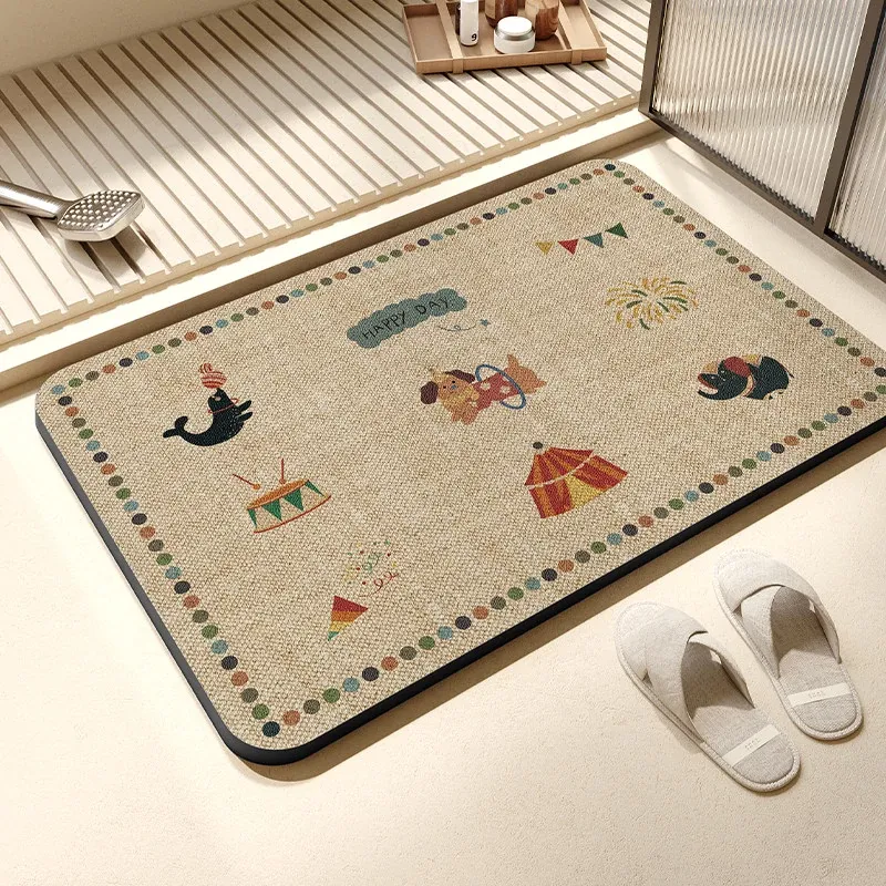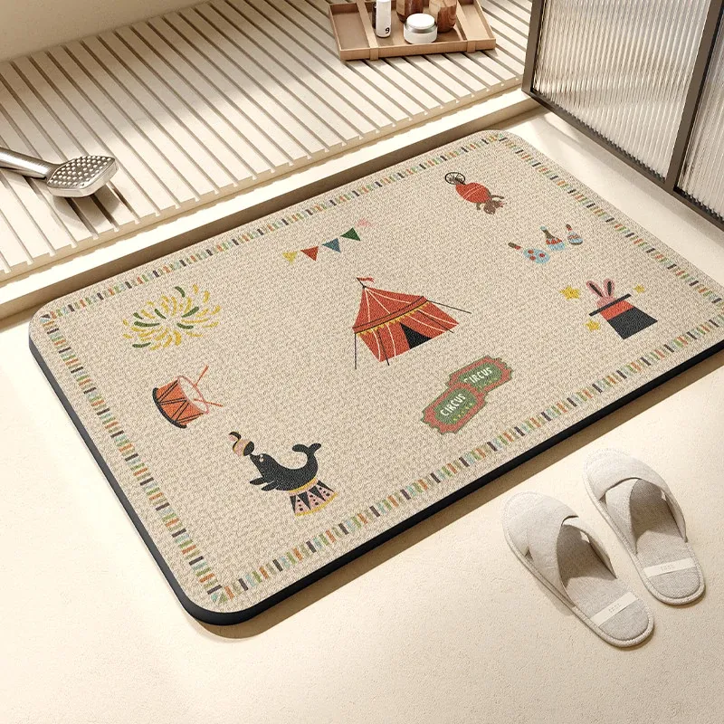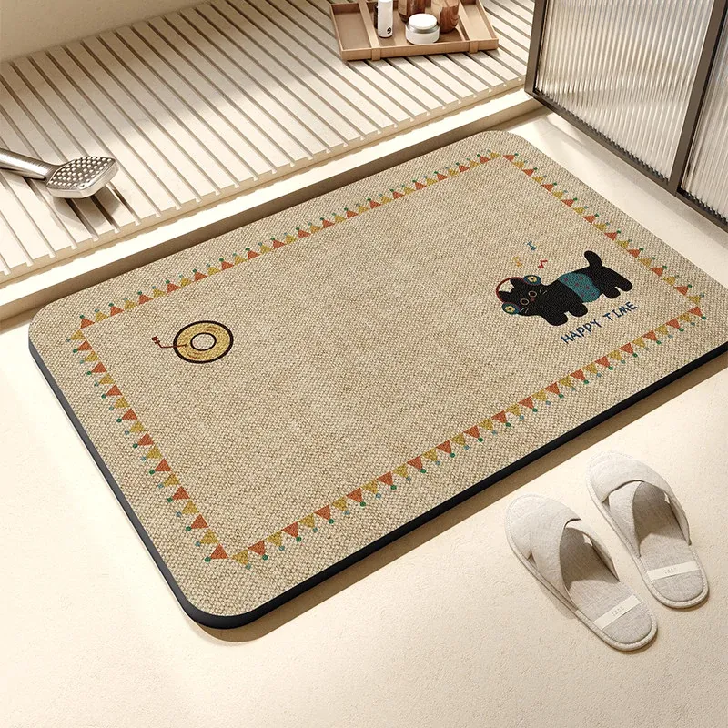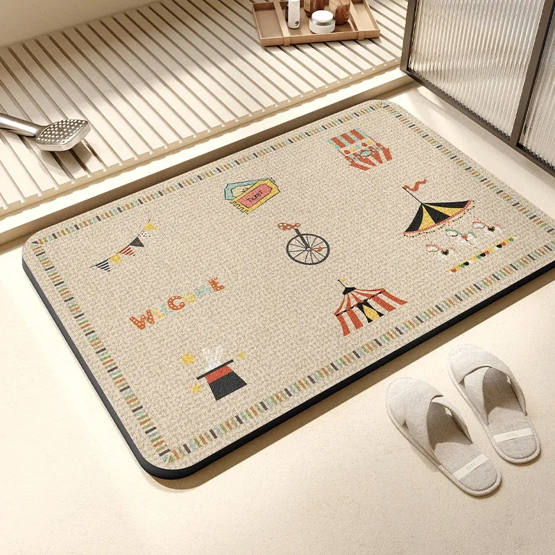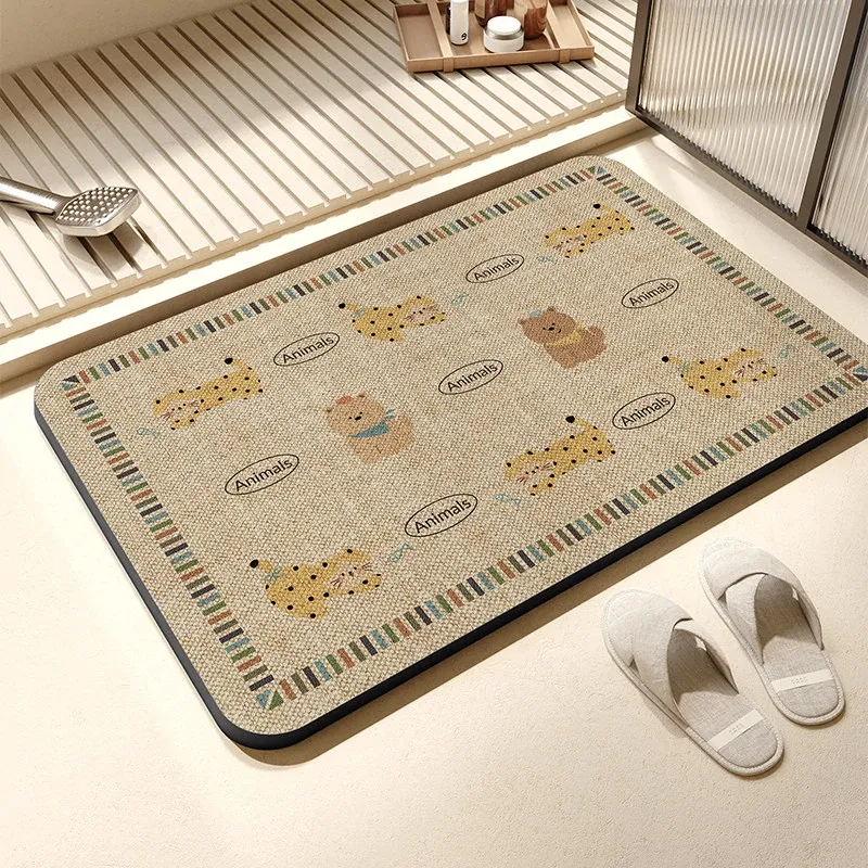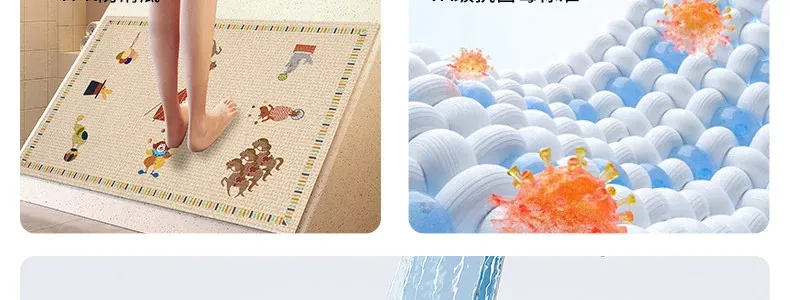 抗菌速乾バスマット - 滑り止め付きで安全!おしゃれなデザインのトイレマット、家庭用にも最適。水分を素早く吸収し、快適なバスタイムをサポートします。