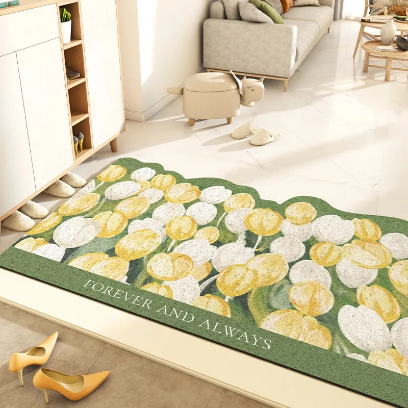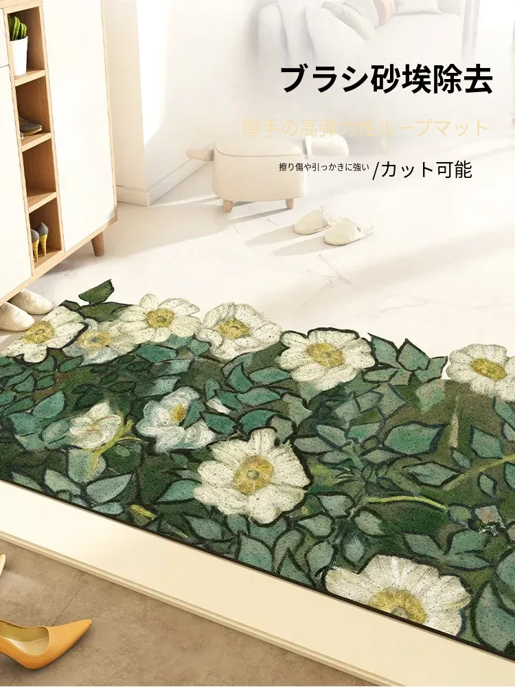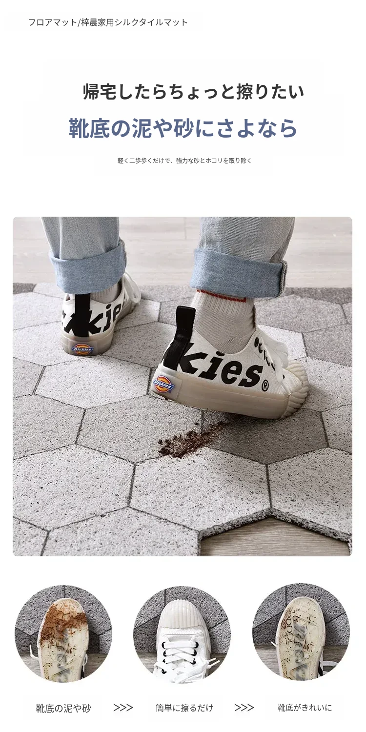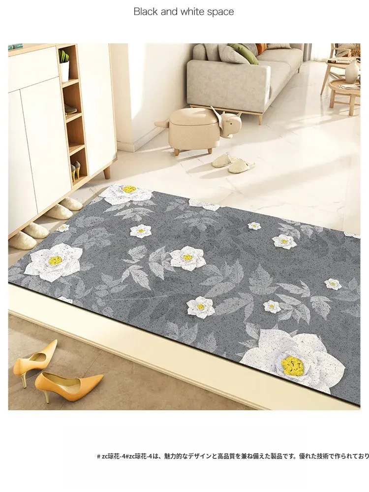 防水・滑り止め効果抜群!おしゃれなシルク調ドアマット - お家の玄関を彩る、洗濯不要でカット可能な便利マット。入口を清潔に保ち、快適な毎日をサポートします!