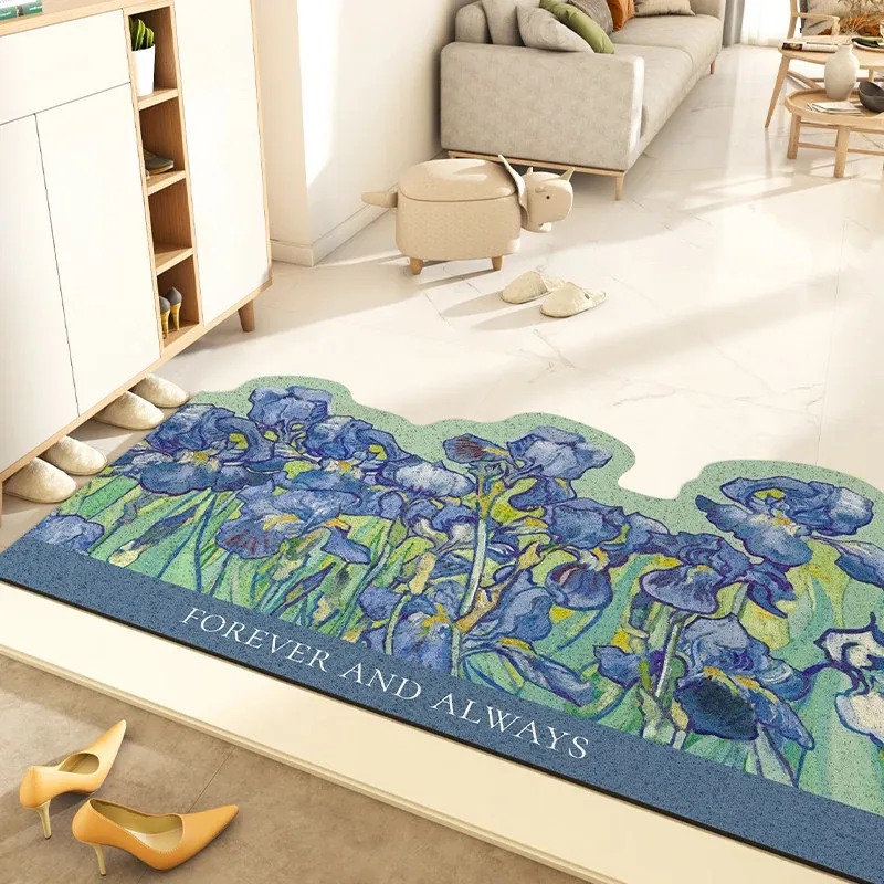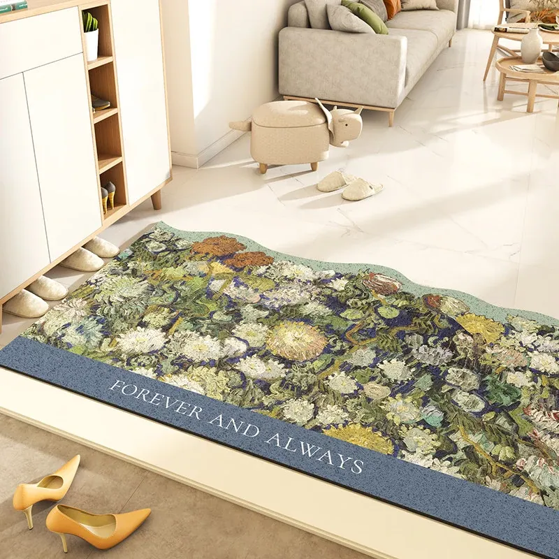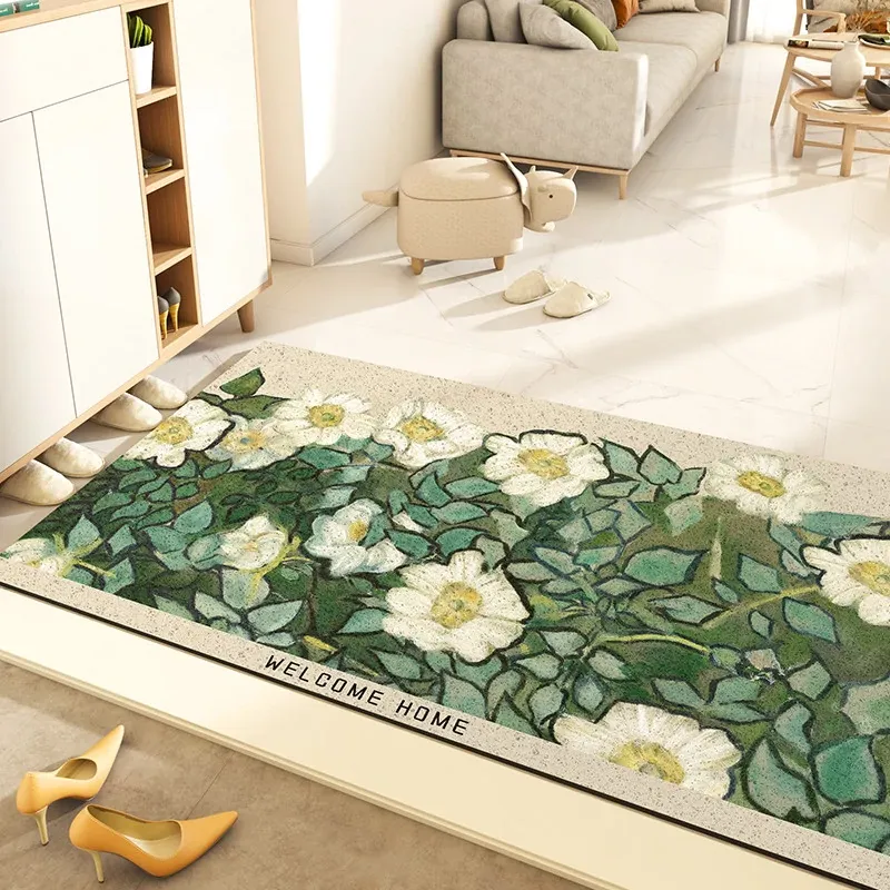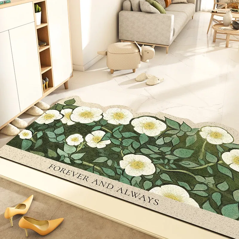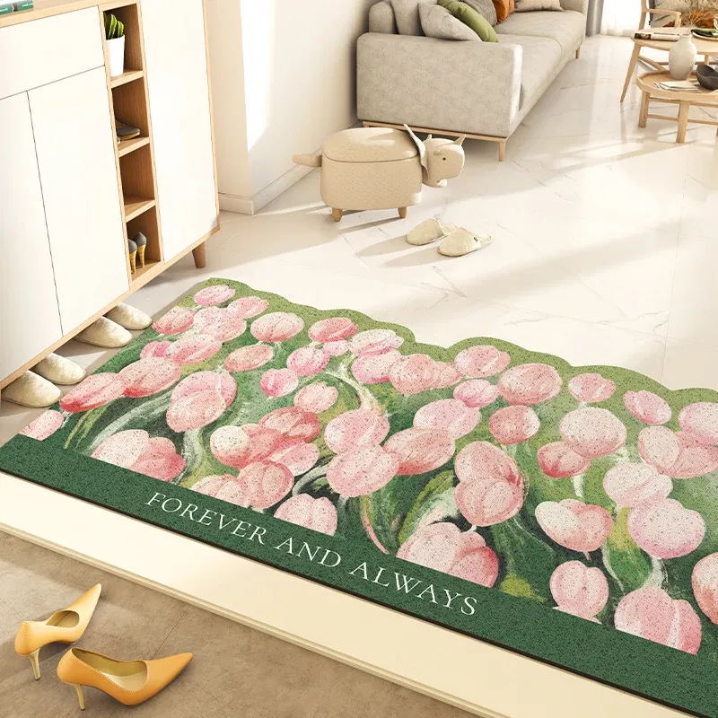 防水・滑り止め効果抜群!おしゃれなシルク調ドアマット - お家の玄関を彩る、洗濯不要でカット可能な便利マット。入口を清潔に保ち、快適な毎日をサポートします!