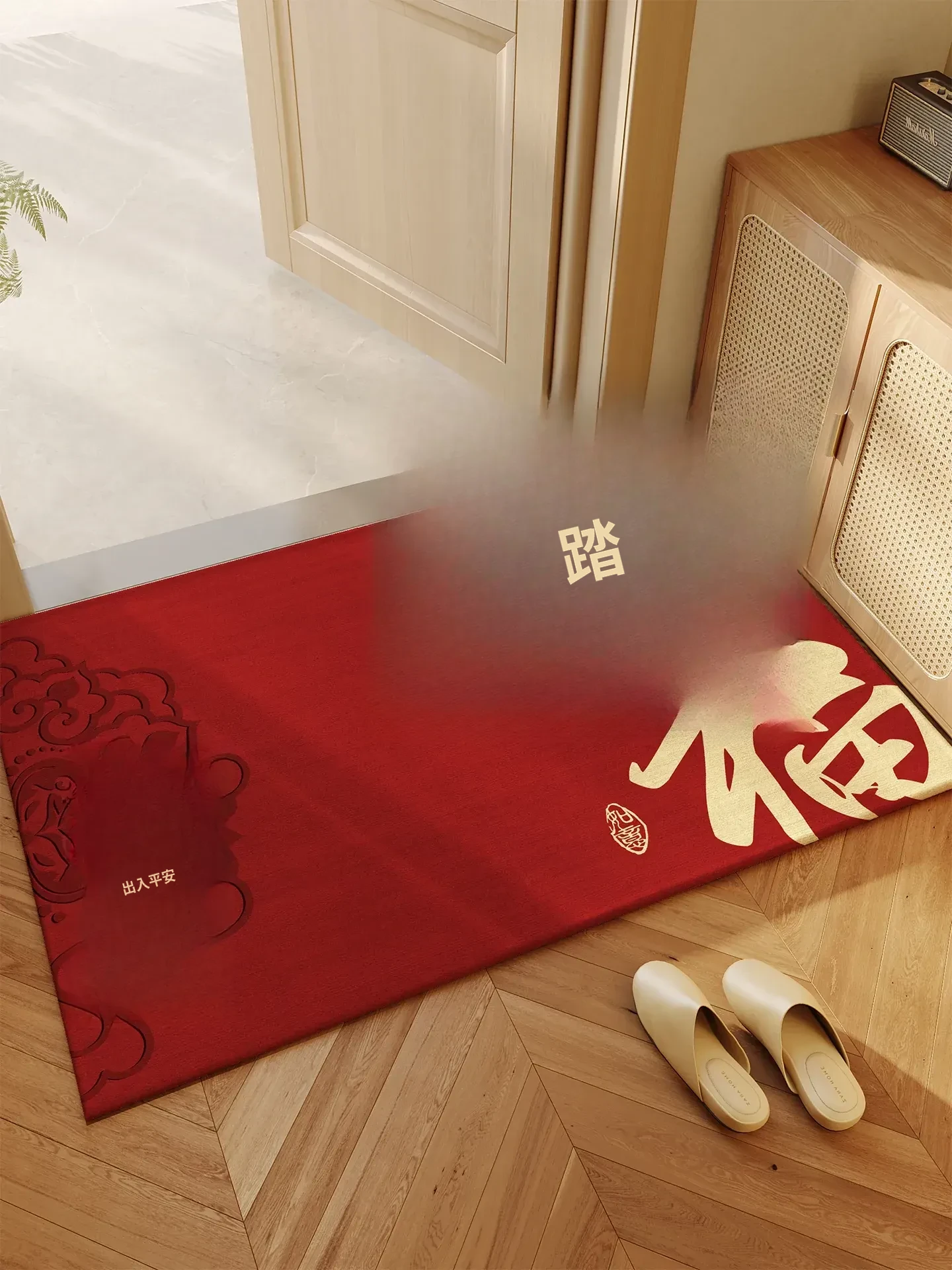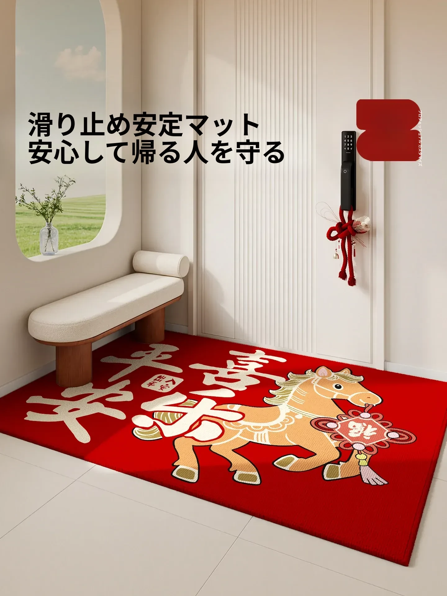 2026年新登场!馬年の特別デザイン赤い玄関マット - 滑り止め付きで安全、厚手で快適な足元を演出!お祝いの雰囲気を漂わせる家庭用玄関マットで、あなたの家を華やかに彩ります。