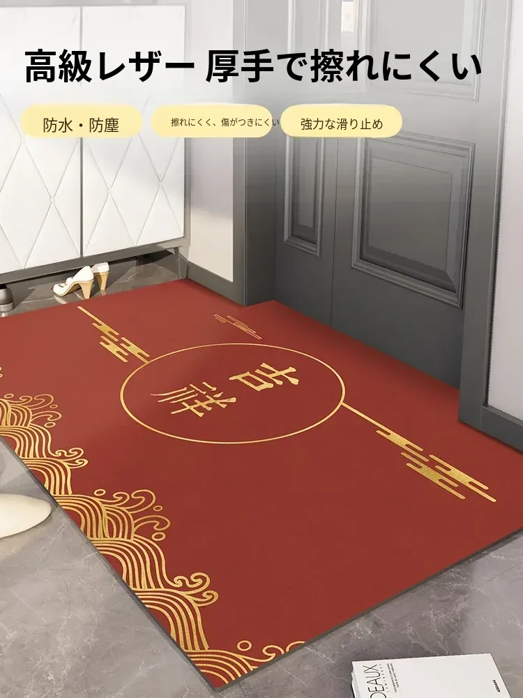 出入平安!新中式デザインのレザー玄関マット - 家庭用・室外用の大きなドアマット、入るたびに安心感を提供!おしゃれで機能的な足元のアクセント。