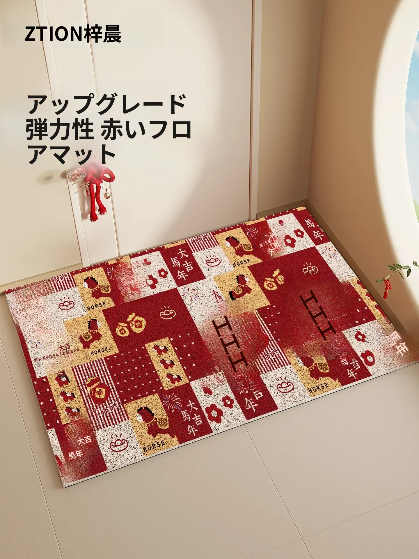 2026年馬年新作!赤色入り口マット - 滑り止め機能付きで安心!カスタマイズ可能な玄関マットで、あなたの家を華やかに彩ります。おしゃれで実用的なデザインで、快適な暮らしをサポート!