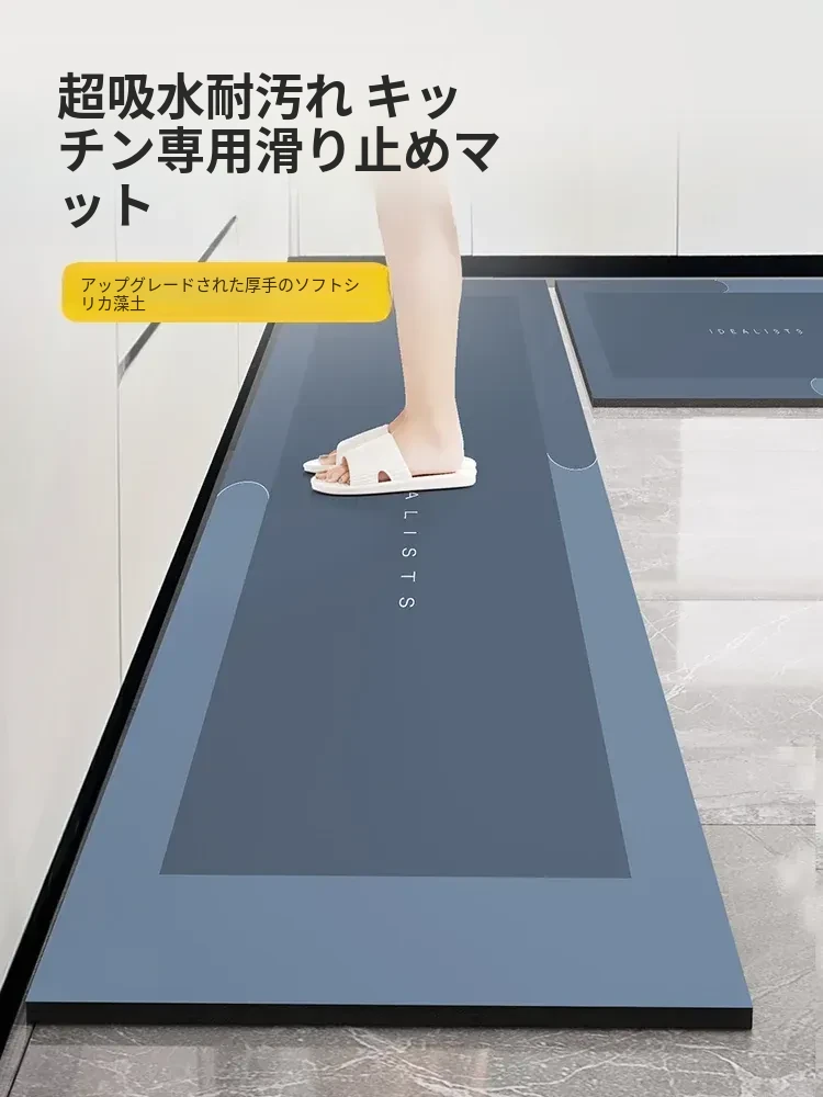 キッチン専用の柔らかい珪藻土マット - 滑り止め・防油・拭き取り不要で吸水性抜群!汚れを防ぎ、手間いらずの清掃で快適なキッチンライフを実現します。