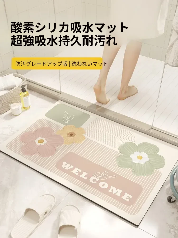吸水性抜群!滑り止め付きのシリカゲル製バスルームマット - トイレや洗面所に最適!速乾性でいつでも清潔、快適な足元を実現します!