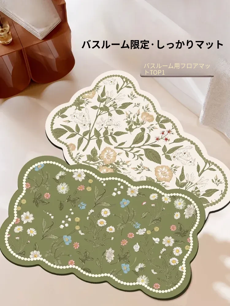 バスルーム吸水マット|滑り止め機能付き!新デザインのトイレ・洗面所用カーペットで、快適なバスタイムをサポート。水分を素早く吸収し、清潔感をキープ!