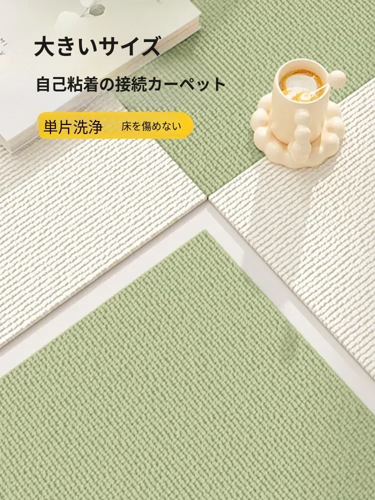和風デザインの接着不要な自粘式マット - オフィスや寝室にぴったり!広々としたリビングルームにも最適な大判タイルカーペット。快適な空間を演出し、インテリアを格上げします。