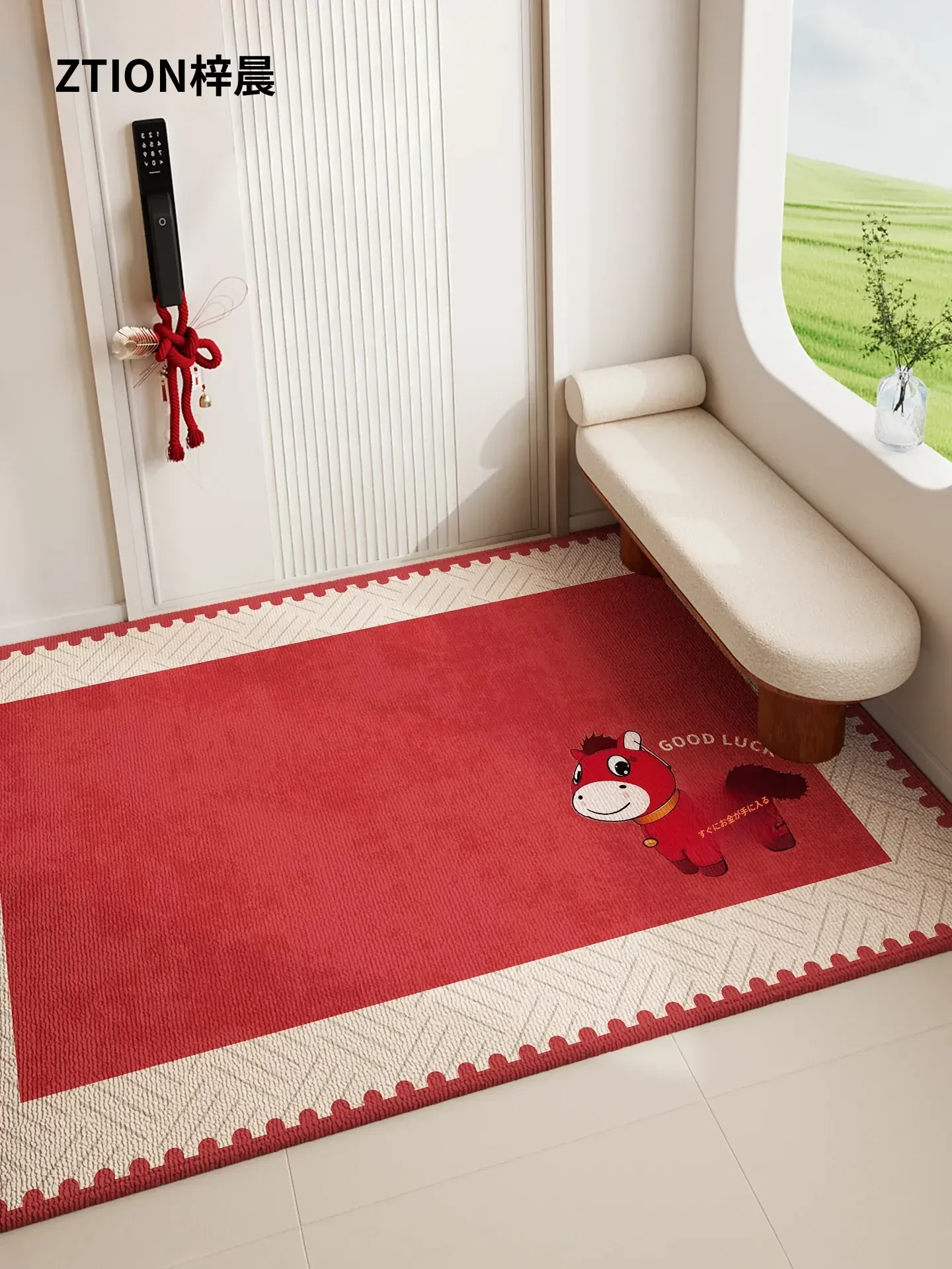 新年を祝う高級感あふれる赤い玄関マット!汚れに強く、滑り止め機能付きで安心!新しいデザインでおしゃれな家の入り口を演出し、喜びを呼び込むアイテムです。