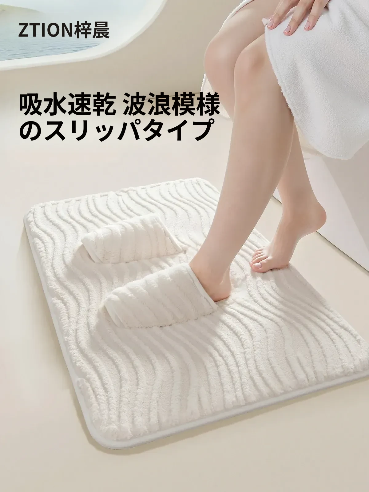 ふわふわのバスルームマット - 吸水性抜群で滑り止め効果もあり!お風呂上がりに最適な足元マット、トイレのドア前にぴったりのデザイン。おしゃれで快適な足元を演出します!