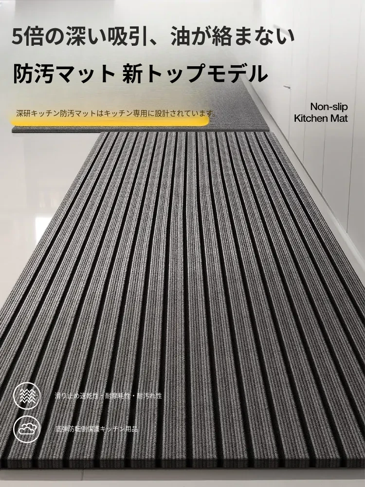 滑り止め&油汚れ防止!お手入れ簡単、水分&油分をしっかり吸収するキッチンマット。耐久性抜群で汚れにも強い、玄関マットにもぴったりなエントランスマット!