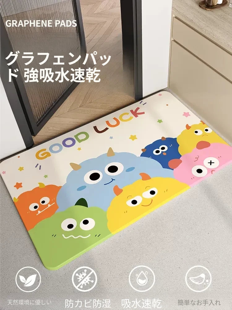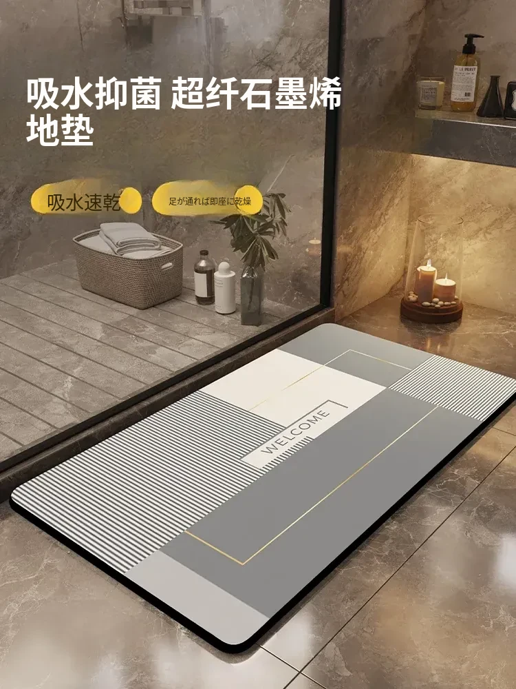 高級バスルームマット - グラフェン吸水マット、トイレ用滑り止めマット、洗面所やトイレの入り口に最適!快適さと安全性を両立したデザインで、毎日の生活をグレードアップ!