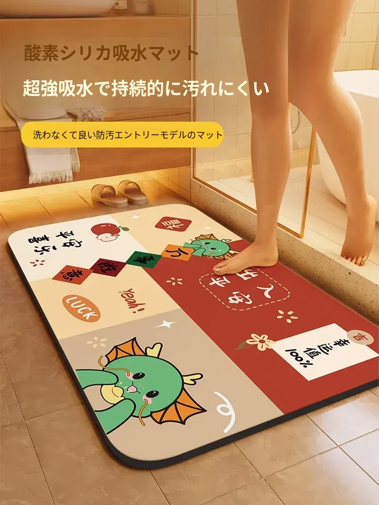 2024年のドラゴンイヤーにぴったり!赤い酸素シリコン吸水マット - バスルームの入り口に最適な滑り止めマット。家庭用にも最適で、清潔感と安全性を両立。おしゃれで実用的なデザインで、あなたのトイレを華やかに演出します!