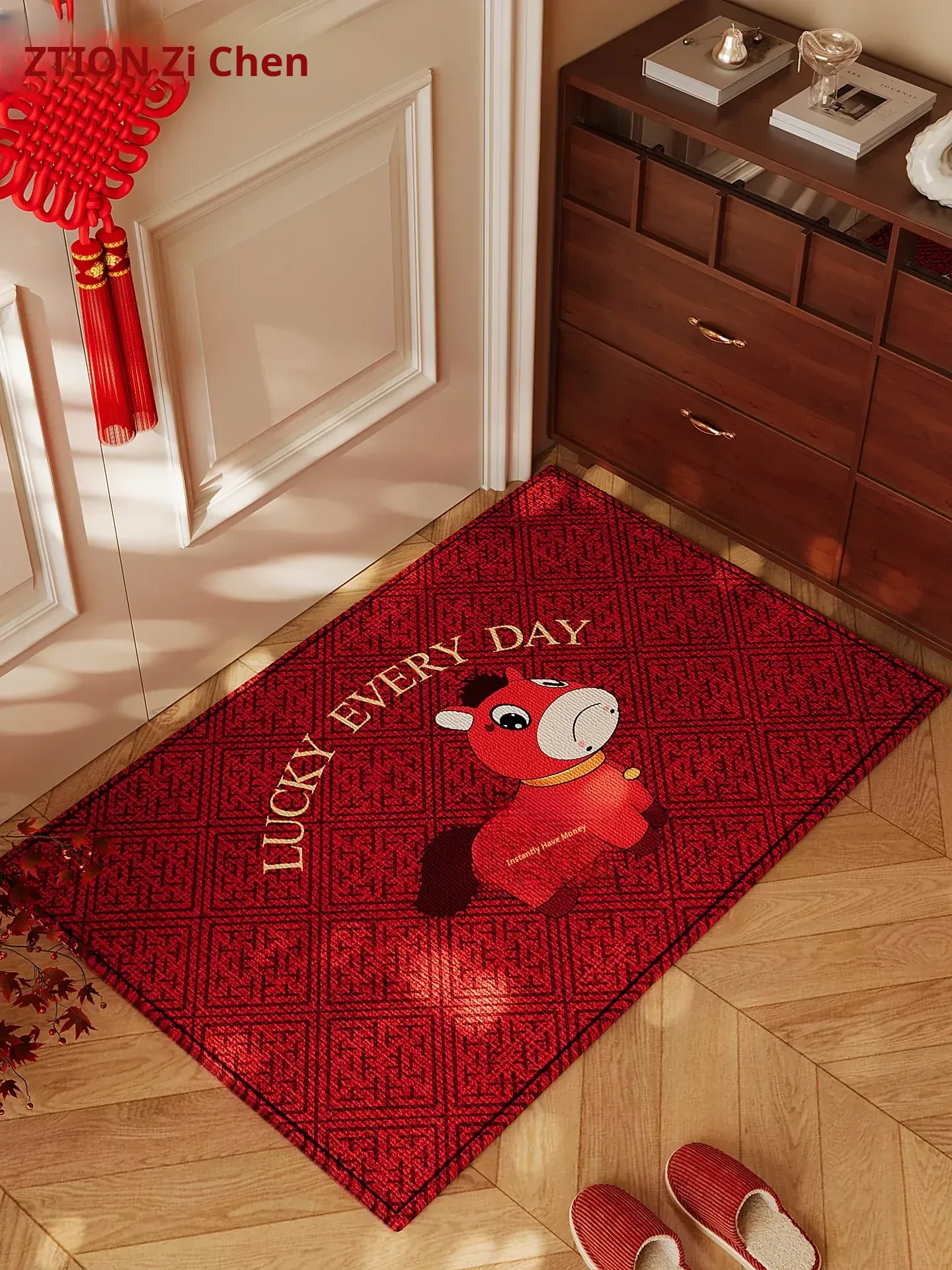 2026 New Year Red Entrance Door Mat - Stylish Indoor Welcome Rug for the Year of the Horse, Perfect for Dust Control at Your Entryway