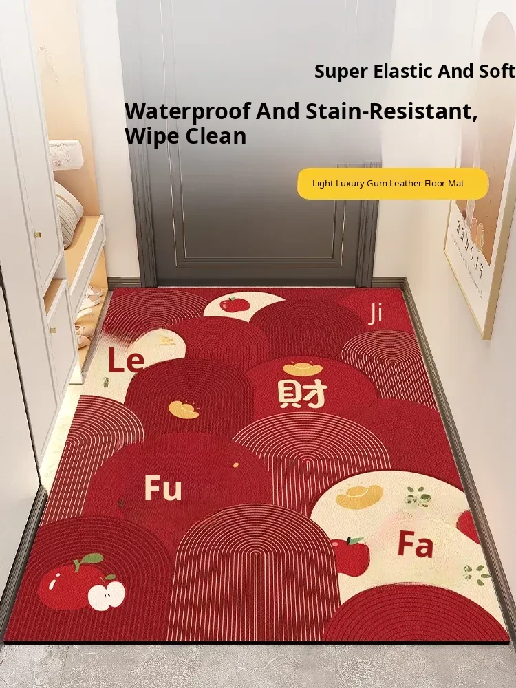 Red Rubber Leather Entrance Door Mat - Washable, No-Clean Required, Festive Non-Slip Welcome Carpet for Home Entryway