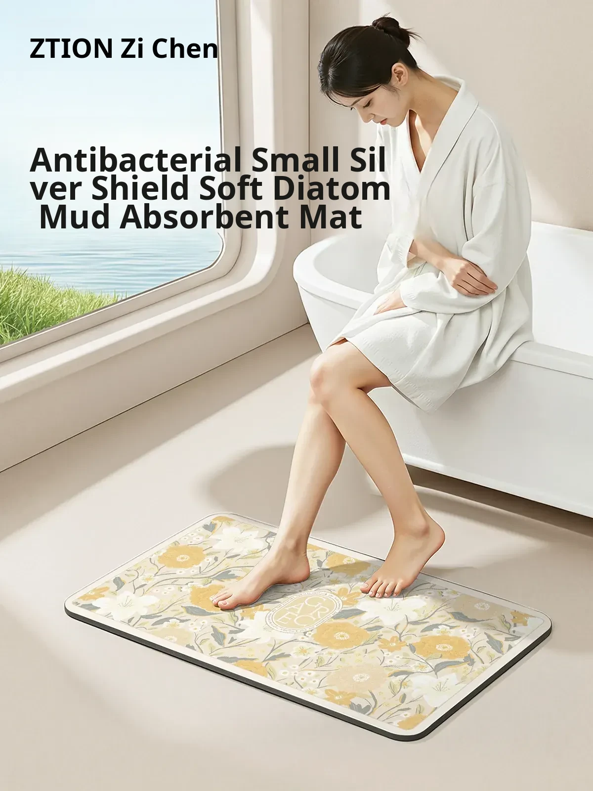 Anti-Slip Diatomaceous Bath Mat with Silver Ions - Absorbent Bathroom Door Mat for Shower & Toilet - Perfect for Enhancing Safety and Hygiene in Your Washroom