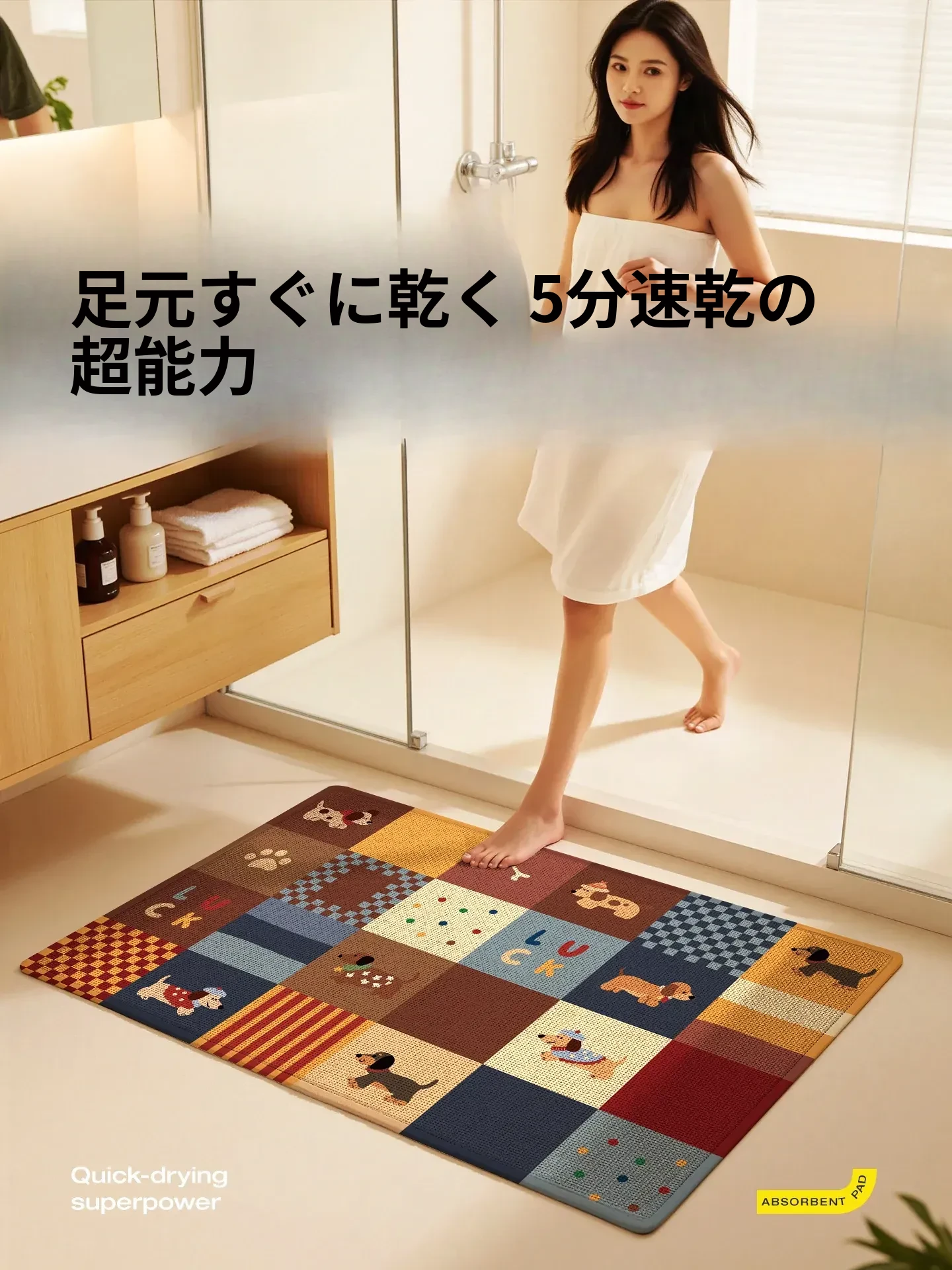 吸水性抜群!速乾&滑り止め機能付きバスルームマット - トイレ・洗面台用の快適な吸水マットで、いつでも清潔・安心のバスライフをサポート!