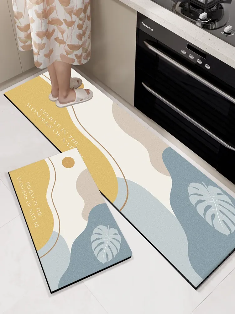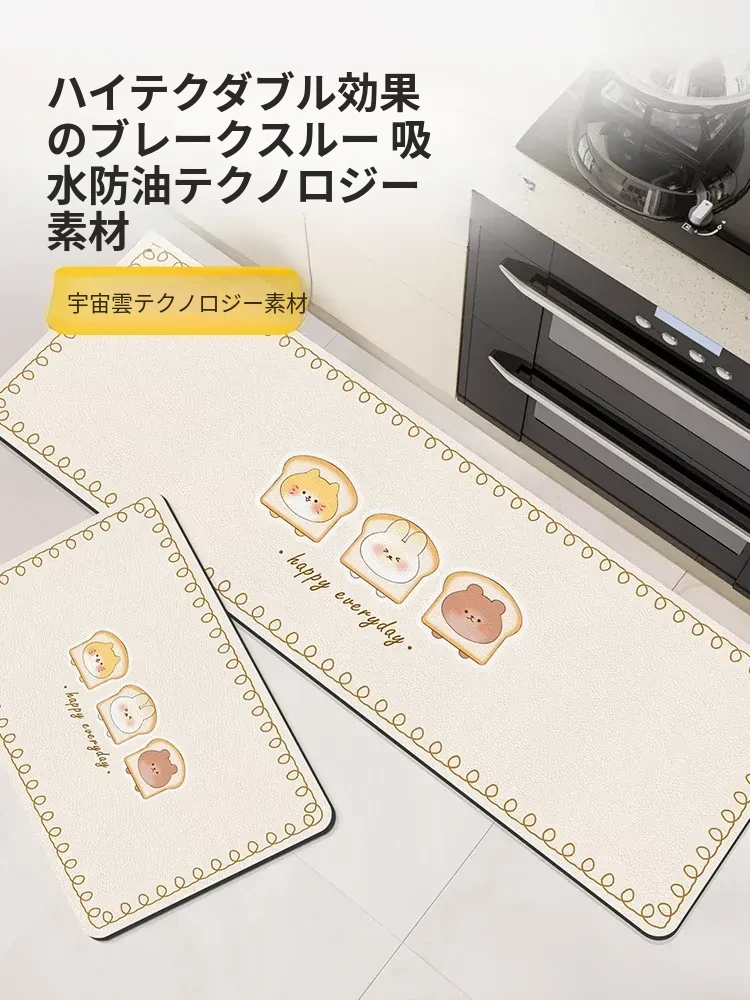 吸水性抜群!滑り止め付きのシリカゲルキッチンマット - お手入れ簡単、速乾&防油で汚れを気にせず使える家庭用玄関マット!