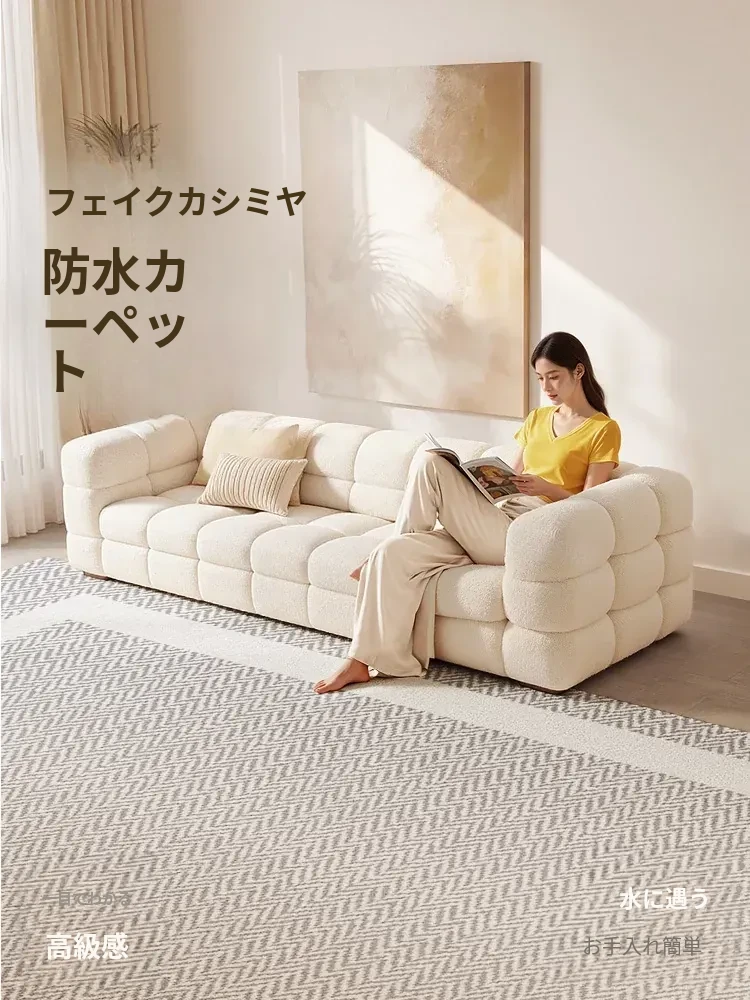 ニュージーランドウールカーペット・リビングルーム用2025年新作!防水&お手入れ簡単、ベッドサイドにもぴったりなシンプルで高級感あふれるマット。