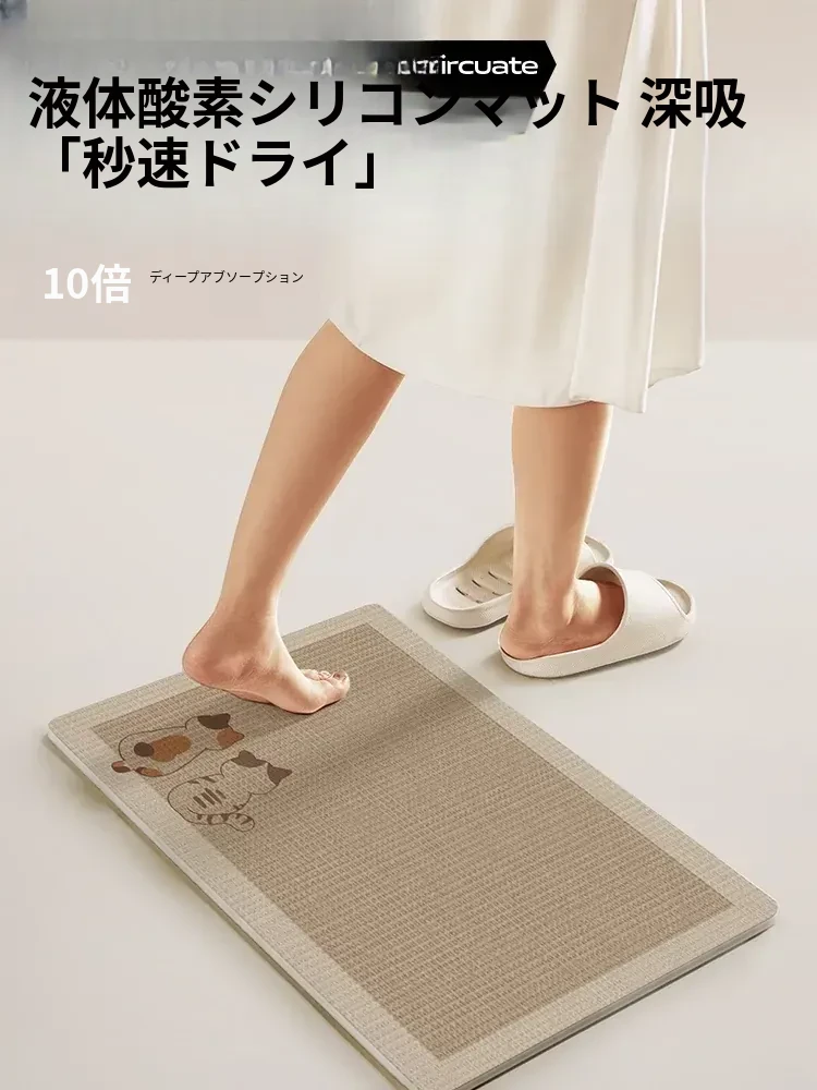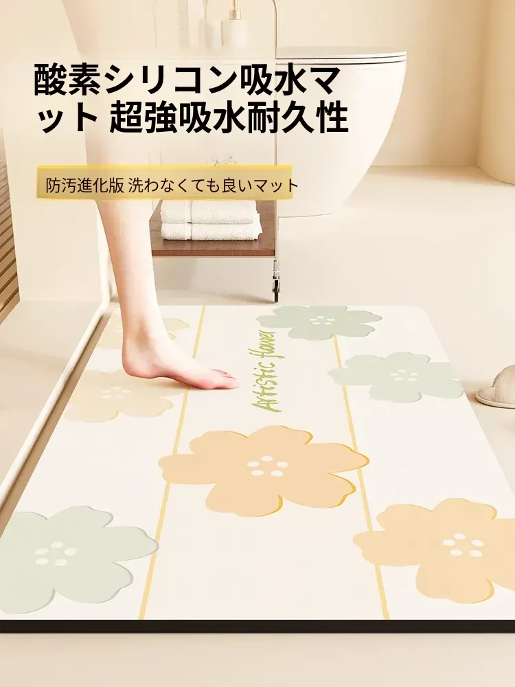 酸素シリコン製トイレ用吸水マット|家用の耐汚れカーペット|バスルームに最適|滑り止め付きで安心|快適な足元を実現!