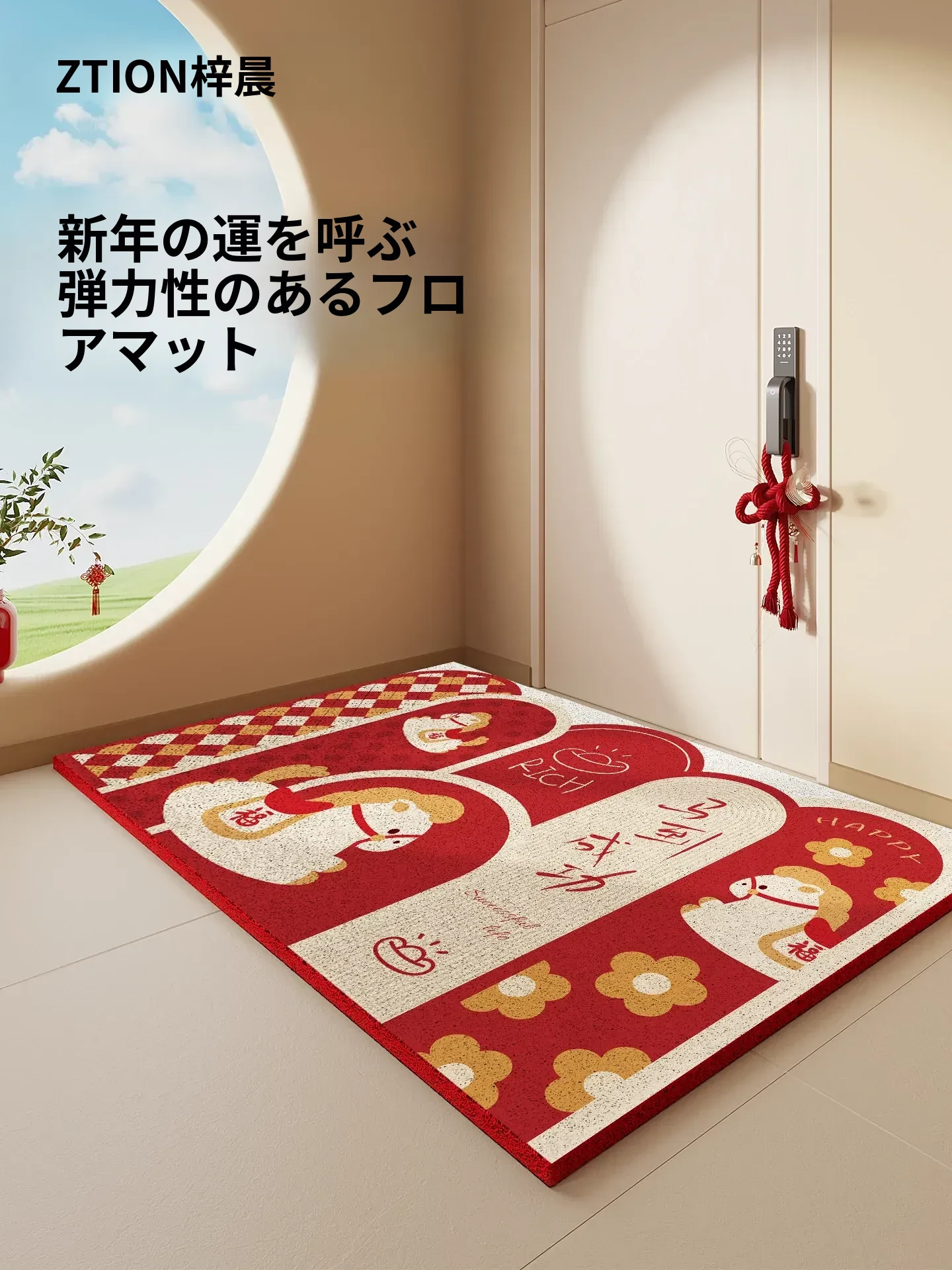 2026年干支「馬」年新登場!祝福紅色入户防滑耐脏门垫,迎接新年喜庆,為您的家增添温暖與好运,完美适合进门使用,打造舒适洁净的家居环境!
