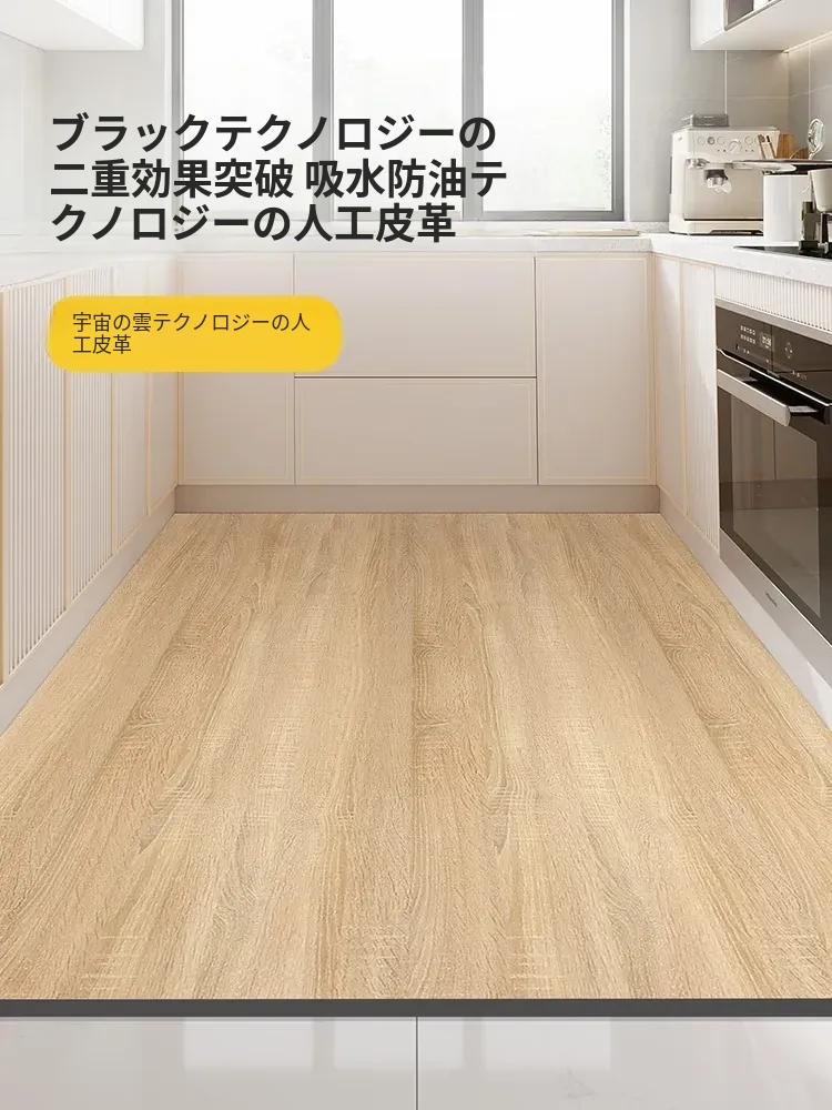 PUレザー製 木目調キッチンマット 吸水・防滑・防油タイプ お手入れ簡単な洗えるカーペット フルカバー可能でカットも自由自在!快適な足元を実現する理想的なマットです。