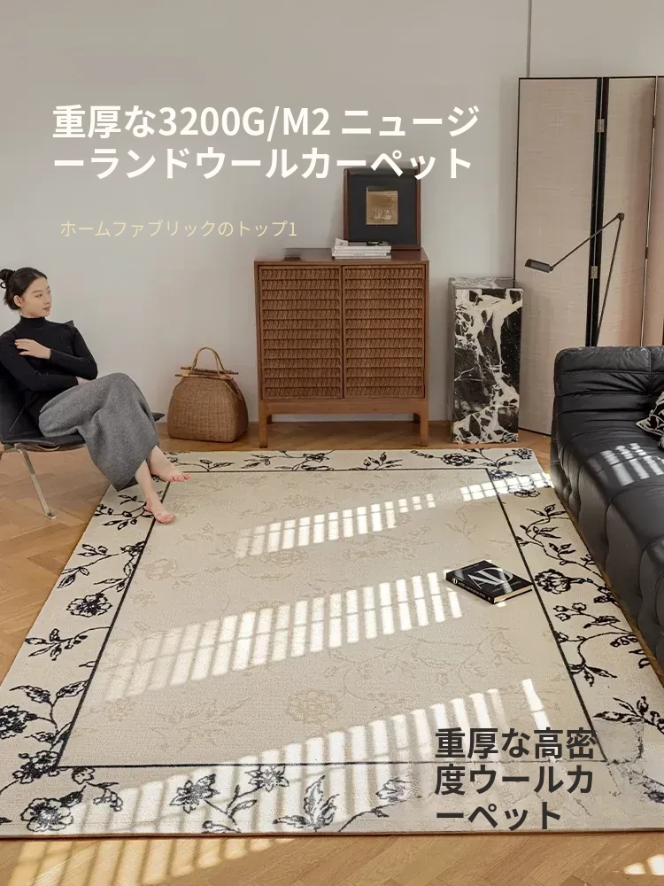 梓晨輸入の高級ウールラグ 2025年新作!リビングやベッドサイドに最適な軽奢デザイン。汚れに強く、お手入れも簡単!あなたの空間を優雅に彩る一枚です。