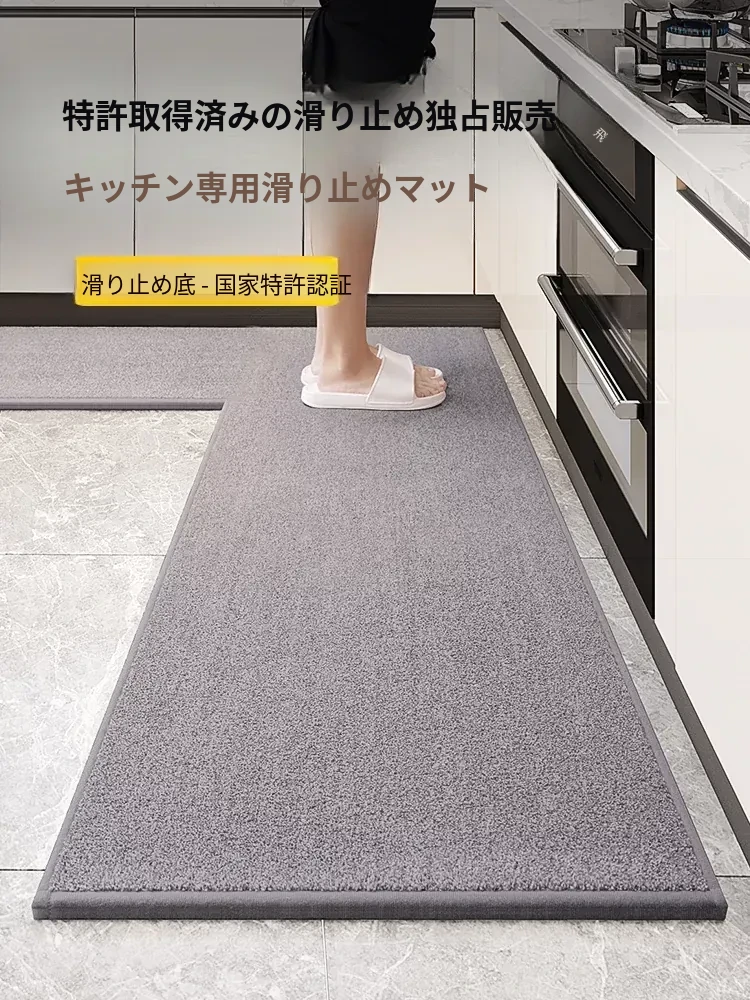 【特許取得済みの滑り止め】キッチン専用の滑り止めマット!油汚れにも強く、洗浄不要で、足を拭くのに最適。家庭用吸水性抜群で、汚れに強いカーペット。快適なキッチンライフをサポートします!